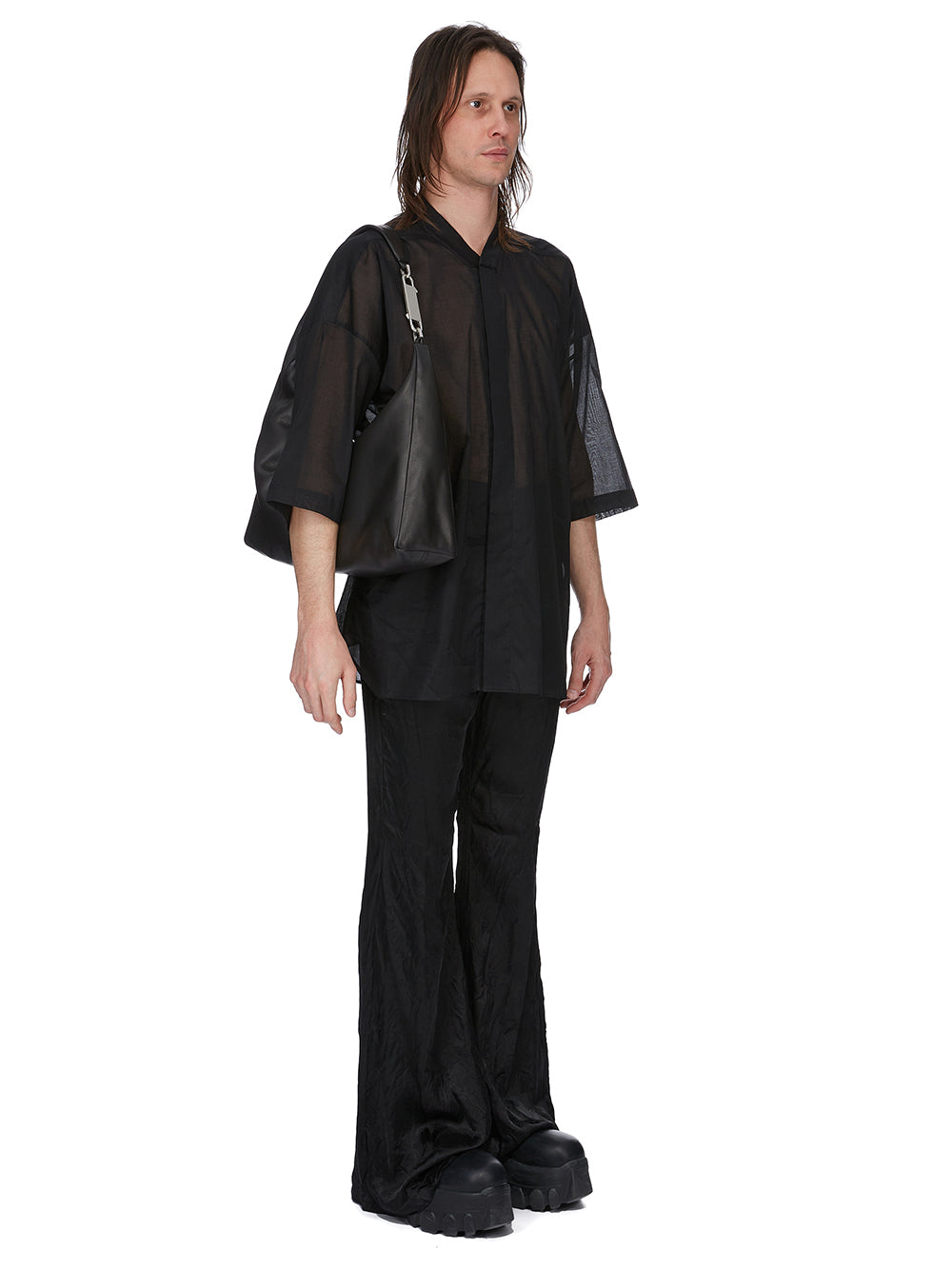 RICK OWENS SS26 TEMPLE CROPPED GEMINI BAG IN BLACK GRAINY COW LEATHER