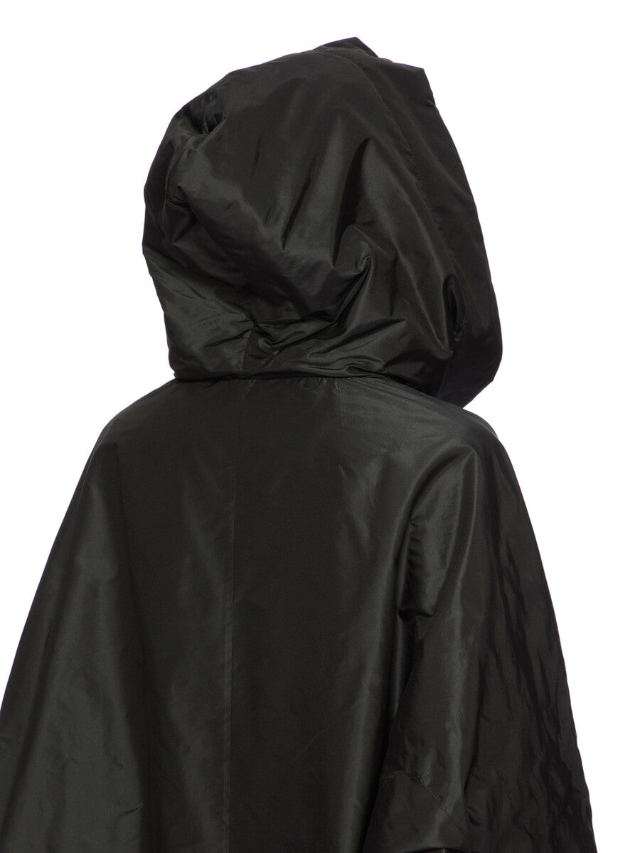 RICK OWENS FW25 CONCORDIANS RUNWAY HOODED GOWN IN BLACK SILK TAFFETAS