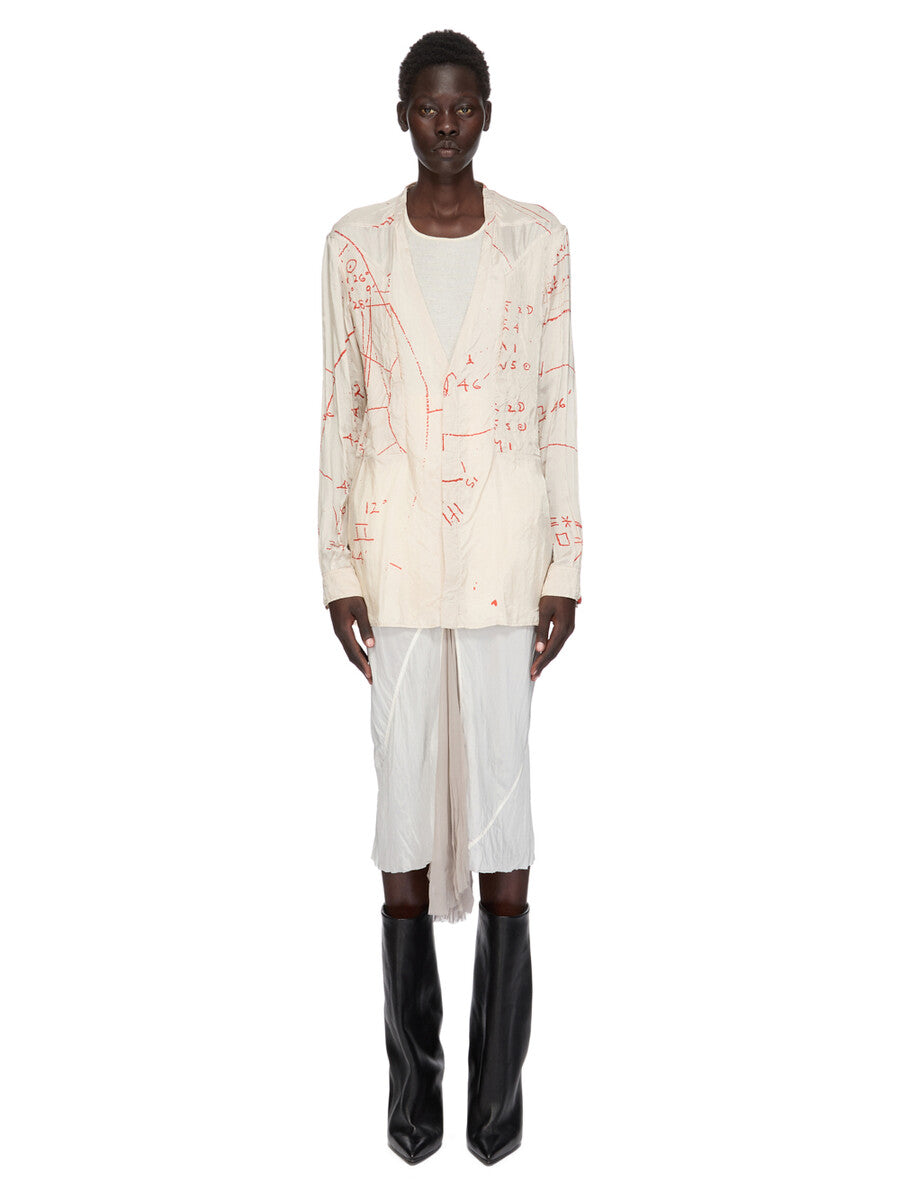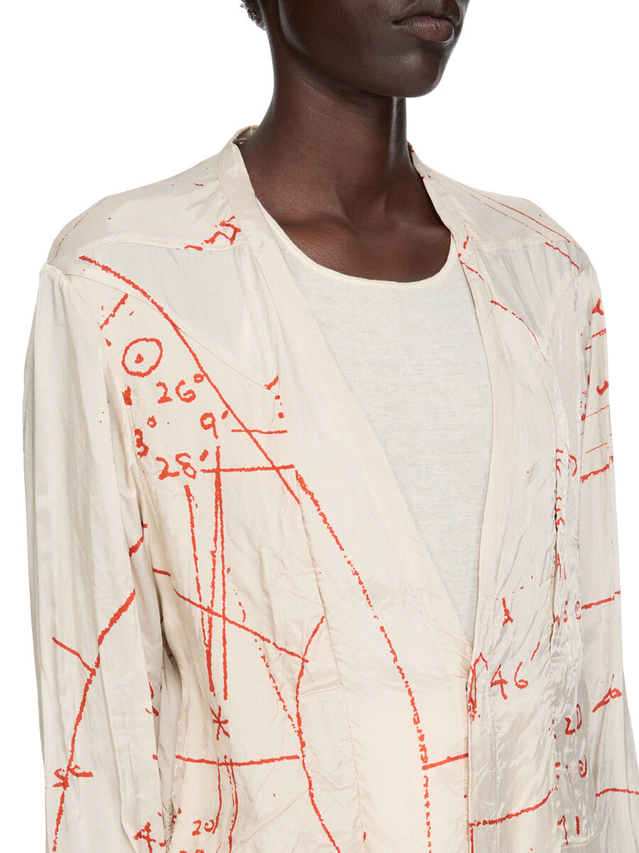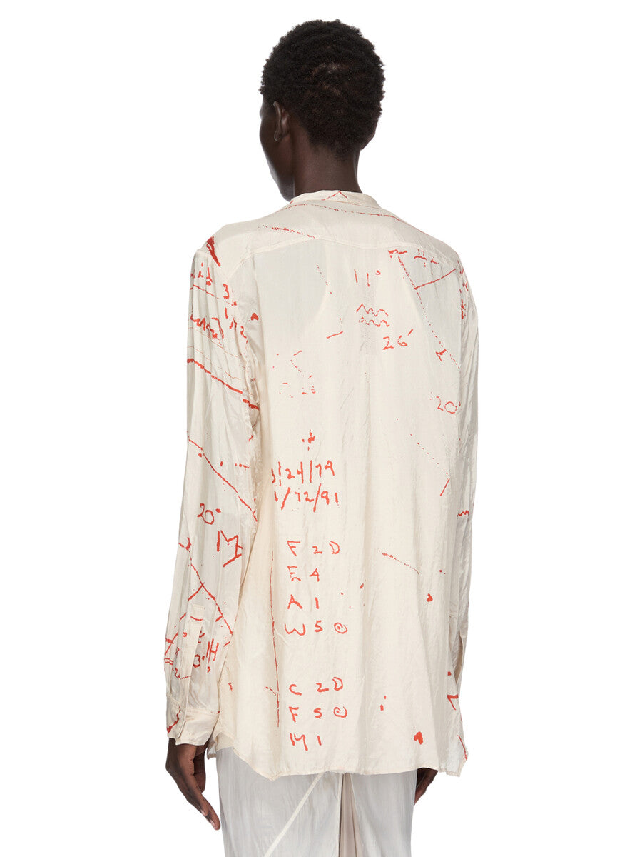 RICK OWENS SS26 TEMPLE LARRY FOGPOCKET SHIRT IN MILK/ORANGE PRINTED CUPRO TWILL