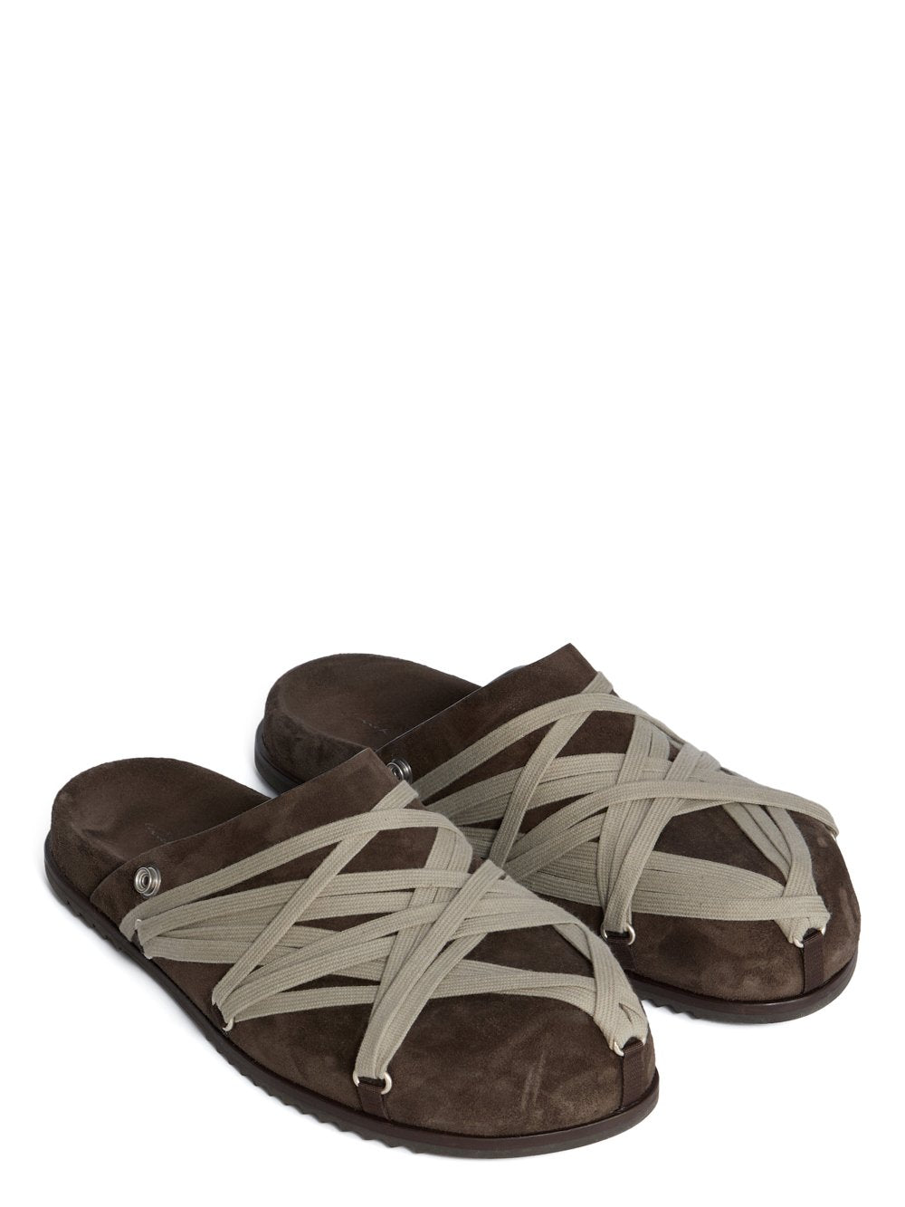 RICK OWENS FW25 CONCORDIANS MEGALACE® MULE GRANOLAS IN BROWN SUEDE LEATHER