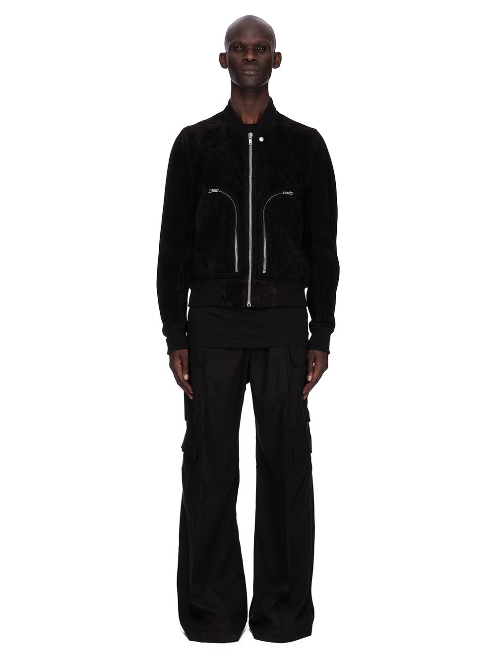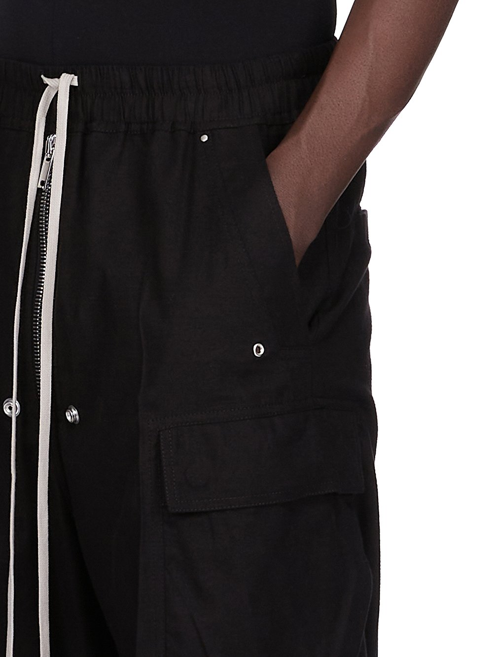 RICK OWENS FW25 CONCORDIANS CARGOBELAS IN BLACK WOOL FLANNEL