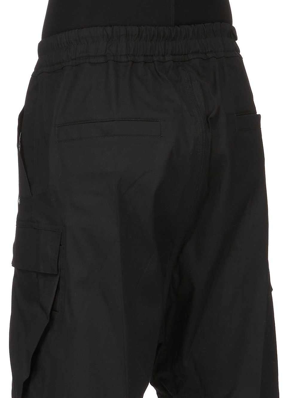 THESE CARGOBELA SHORTS ARE KNEE-LENGTH WITH A LOW CROTCH AND WIDE LEG. THEY FEATURE AN ELASTICIZED WAISTBAND WITH DRAWSTRING AND A BELA EXPOSED CENTER ZIPPER WITH TWO SNAP DETAIL AT BOTTOM. THEY FEATURE TWO BEVELED CARGO POCKETS ON THE SIDE LEG WITH TWO REAR WELT POCKETS, ALL WITH CONCEALED SNAPS AND TOPSTITCHING.