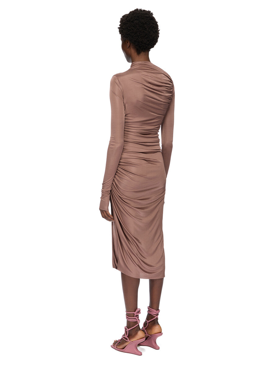 RICK OWENS FW25 CONCORDIANS SVITA LS DRESS IN MAUVE SATIN VISCOSE JERSEY