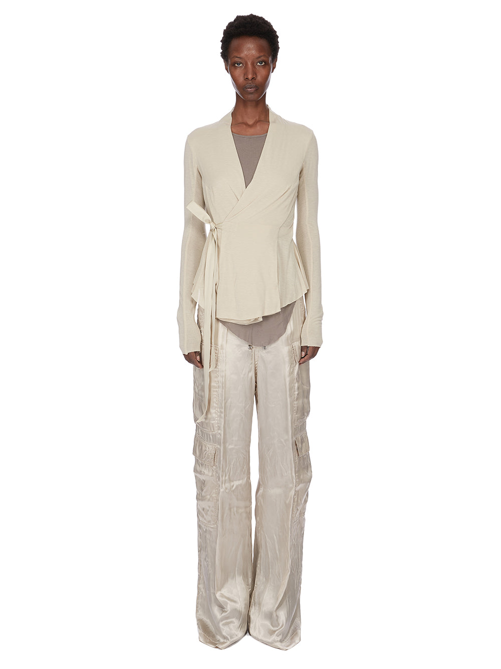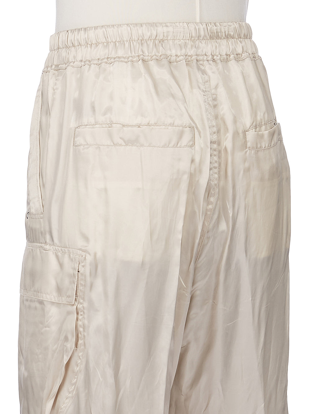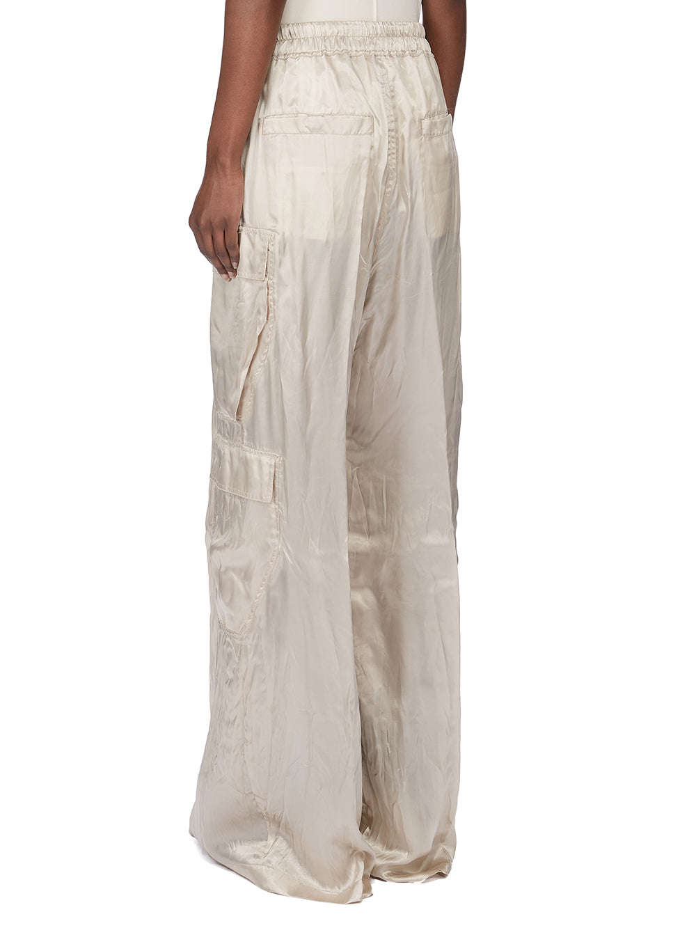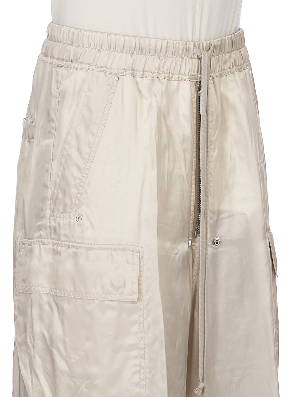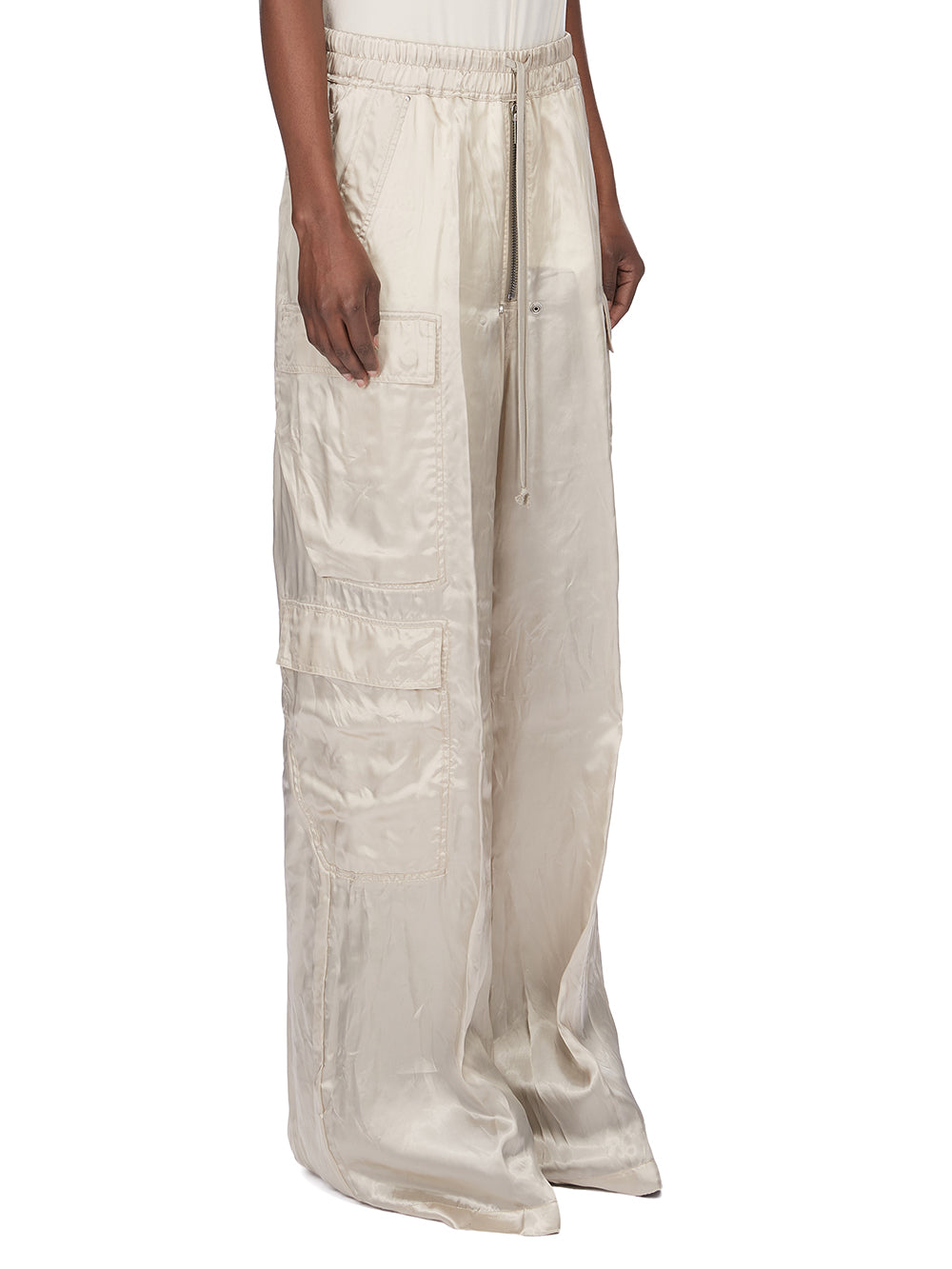 RICK OWENS SS26 TEMPLE CARGOBELAS IN SAND CUPRO SATIN