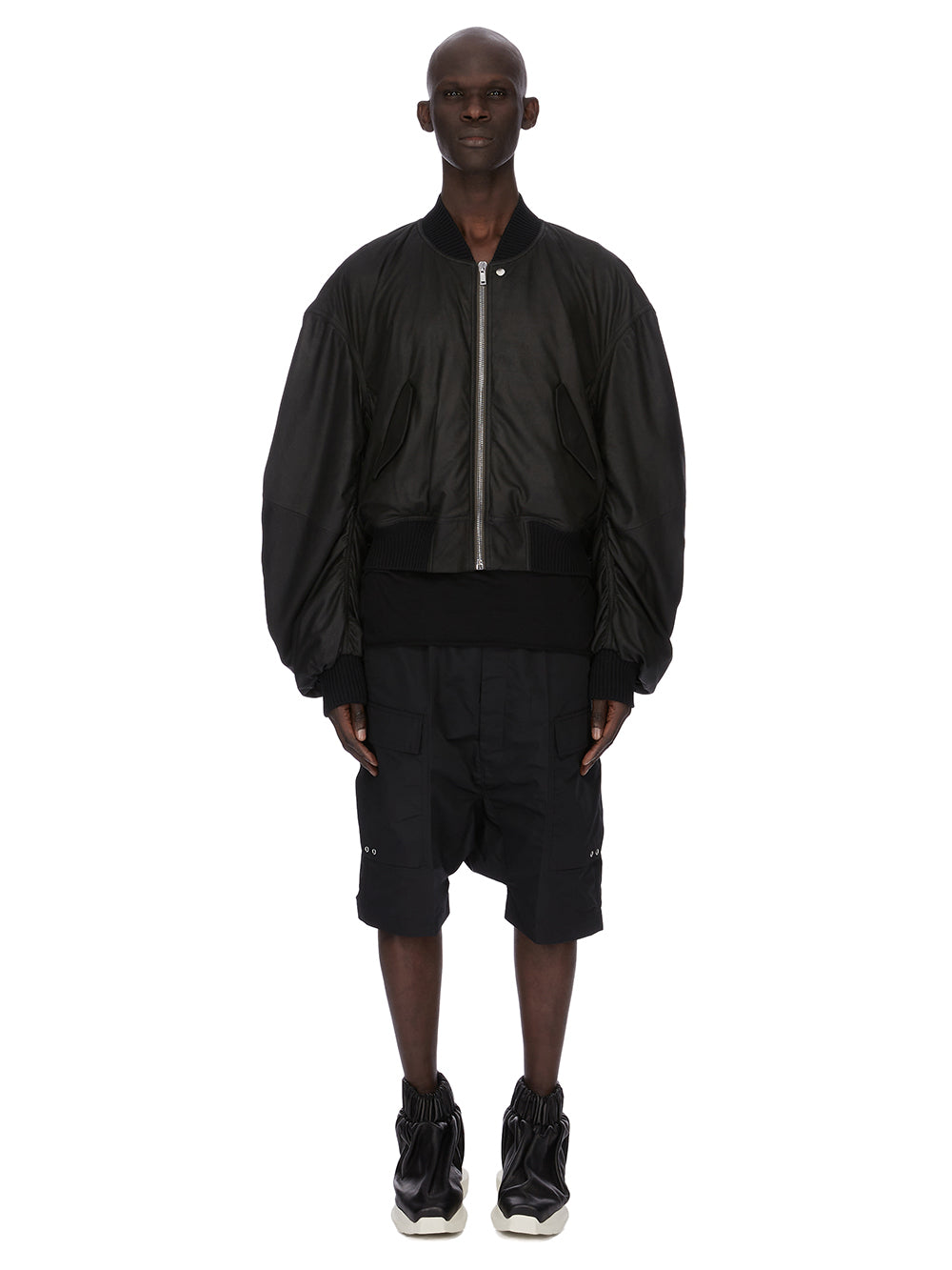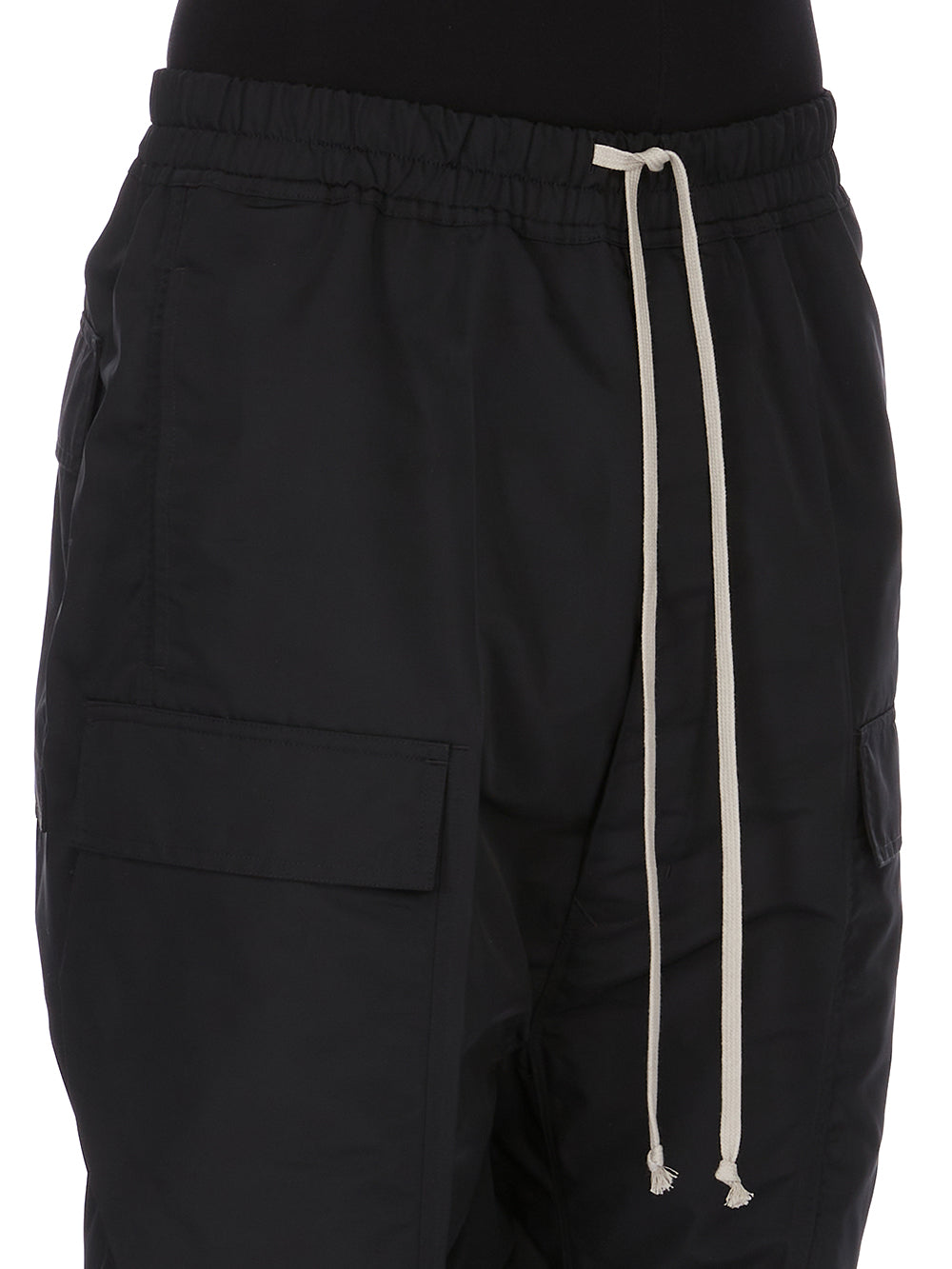 RICK OWENS SS26 TEMPLE CARGO PODS IN BLACK TECH FAILLE