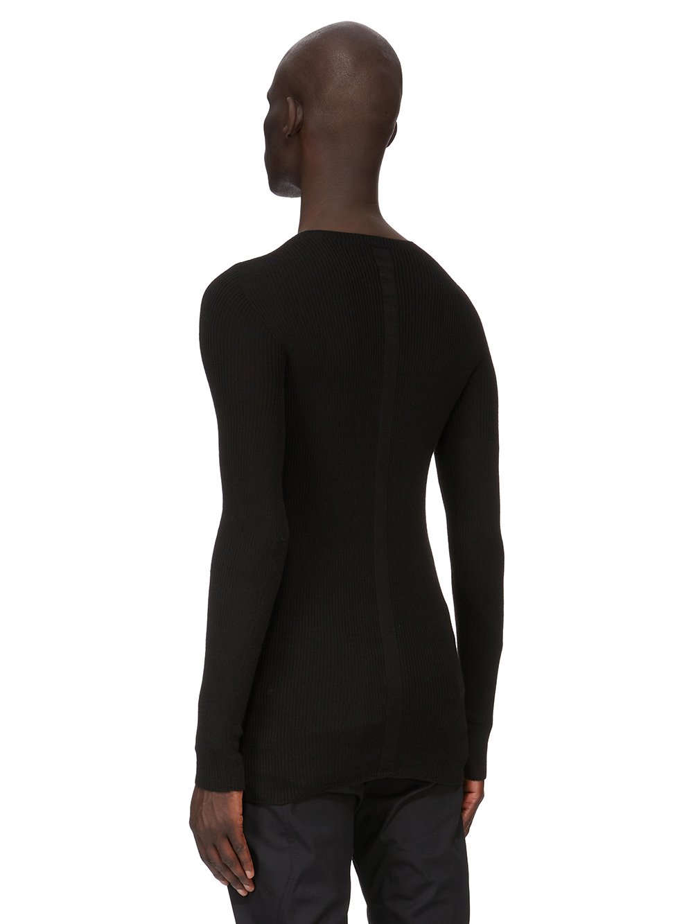 RICK OWENS FW25 CONCORDIANS RIBBED ROUND NECK IN BLACK RIBBED KNIT