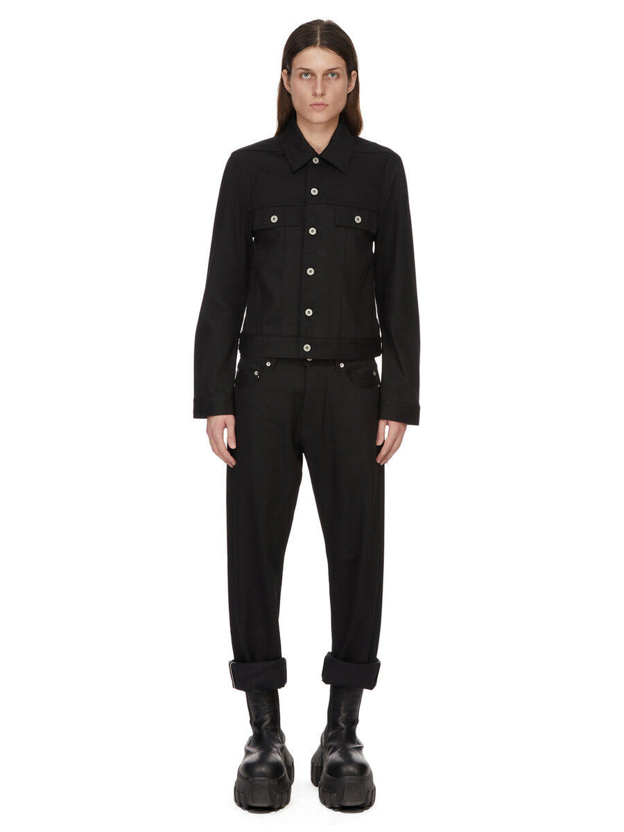 DRKSHDW SS26 TEMPLE TRUCKER JKT IN BLACK 12OZ BLACK DENIM