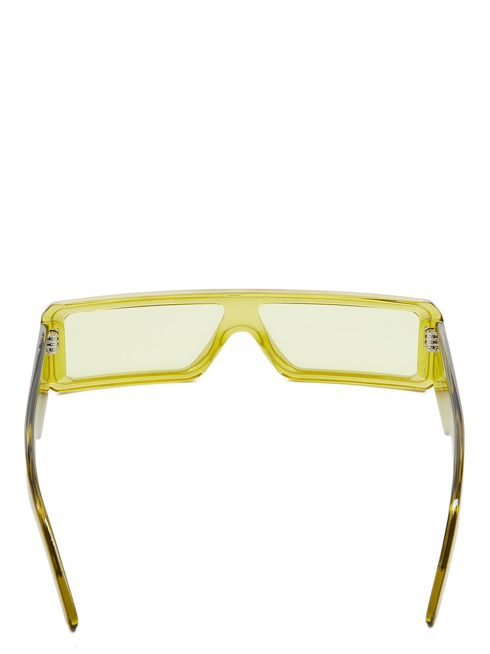 THESE GETH SUNGLASSES FEATURE A SLEEK AND SLIM RECTANGULAR BLACK ACETATE FRAME WITH A SINGLE CUT LENS. THEY HAVE WIDE ARMS WITH THE SIGNATURE TRIO OF SILVER RIVETS ON EACH TEMPLE AND RICK OWENS LOGO ON INSIDE RIGHT.