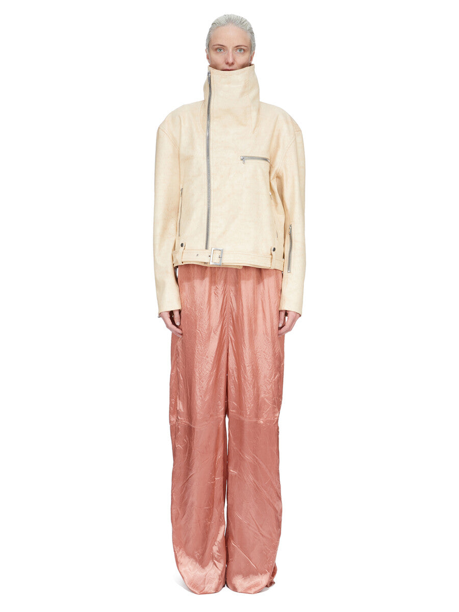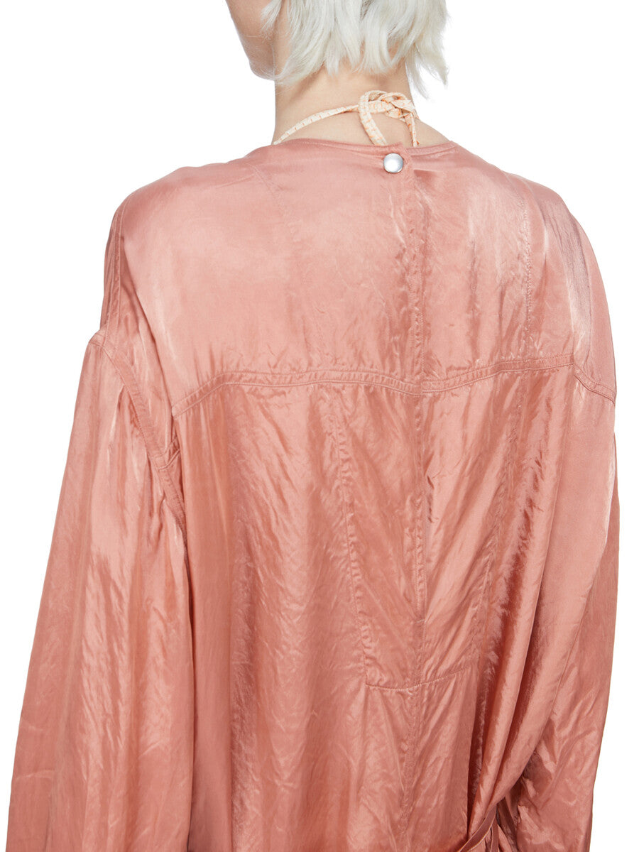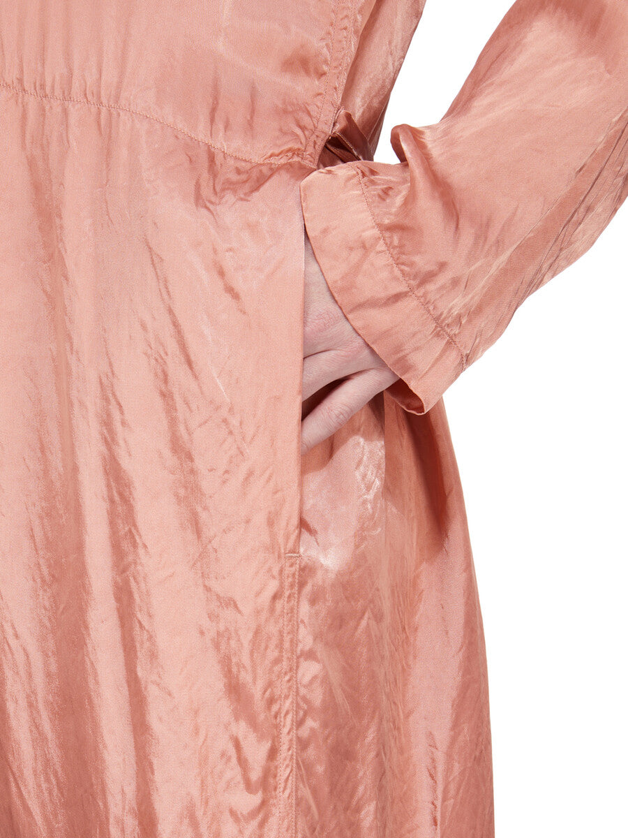 RICK OWENS SS26 TEMPLE LS LONG JUMPSUIT IN CORAL CUPRO SATIN