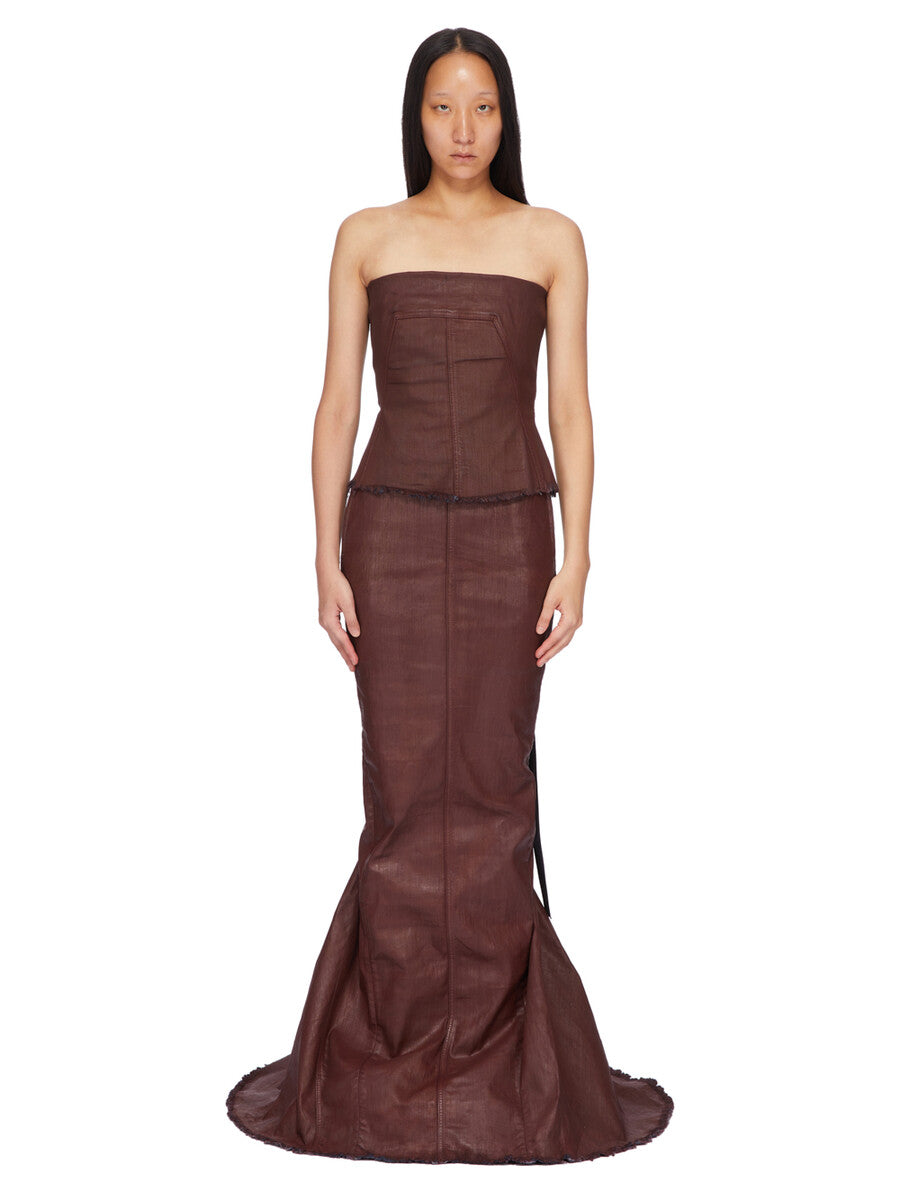 DRKSHDW FW25 CONCORDIANS BUSTIER TOP IN SCAB WAX STRETCH DENIM