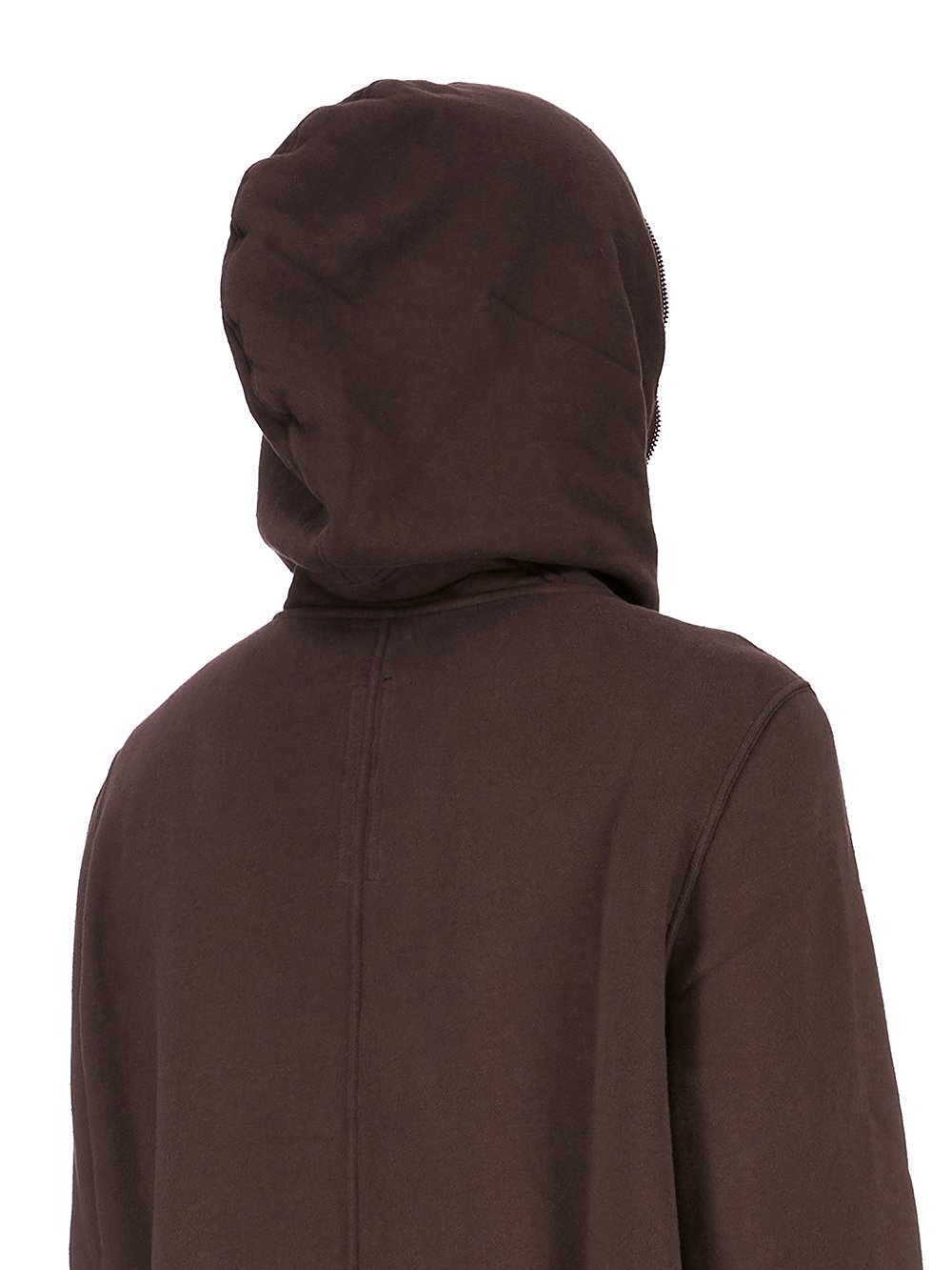 THIS JUMBO GIMP HOODIE IS SLIGHTLY BELOW HIP LENGTH WITH LONG SLEEVES AND LARGE FIT. IT HAS A FRONT ZIPPER CLOSURE WITH EXPOSED ZIPPER TAPE THAT RUNS FROM THE HEM ALL THE WAY UP THROUGH THE HOOD, ALLOWING IT TO BE ZIPPERED COMPLETELY CLOSED OVER THE FACE. IT HAS TWO SIDE FRONT POCKETS, RIBBED CUFFS AND HEM AND A SINGLE SEAM RUNNING DOWN THE CENTRE BACK SPINE.