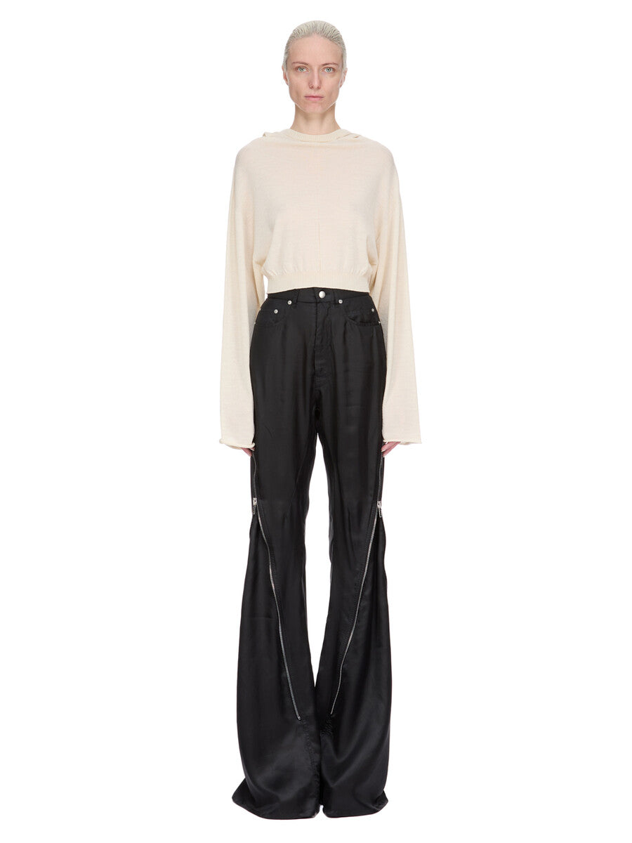 RICK OWENS FW25 CONCORDIANS CROPPED HOODED TUNIC IN NATURAL LIGHTWEIGHT RASATO KNIT