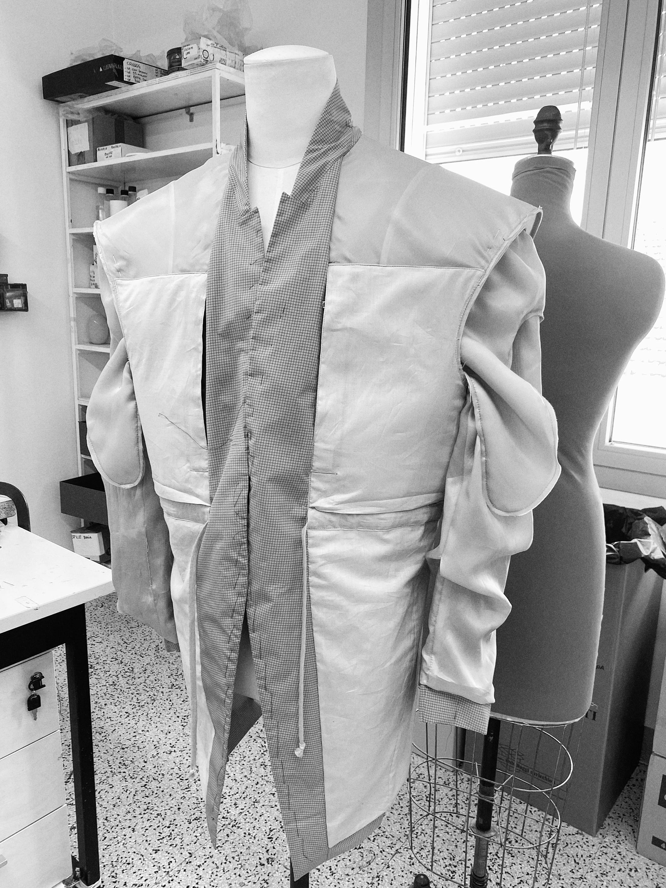 I HAVE DEVELOPED A CAPSULE IN COLLABORATION WITH BONOTTO, A 4TH GENERATION TEXTILE MILL FOUNDED IN 1912 JUST BELOW THE PREALPS IN VENETO, WHICH INCIDENTALLY HAS ONE OF THE LARGEST FLUXUS ART COLLECTIONS IN THE WORLD. ALL THE FABRICS WHICH INCLUDE MINIMALLY FINISHED COTTONS AND RAW WOOLS, ARE WOVEN ON THEIR VINTAGE 1950S LOOMS.