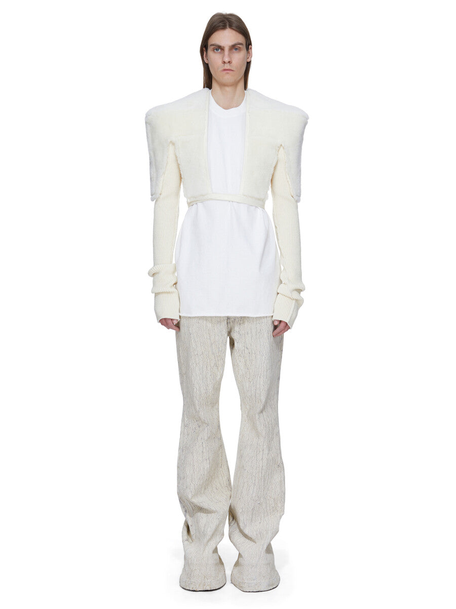 RICK OWENS FW25 CONCORDIANS RUNWAY TIGHT JKT IN MILK ALBINO SHEARLING