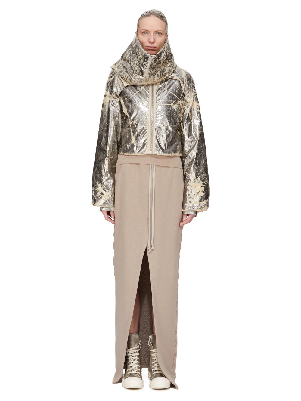 DRKSHDW FW25 CONCORDIANS PHLEG PILLAR SKIRT IN DIRTY PEARL SLUB FELPA