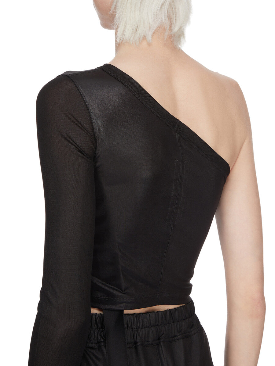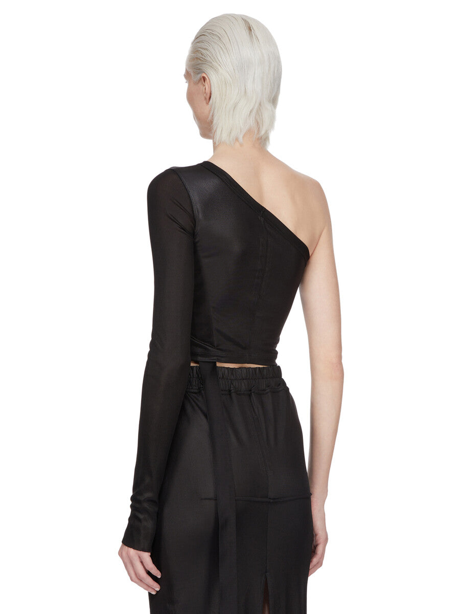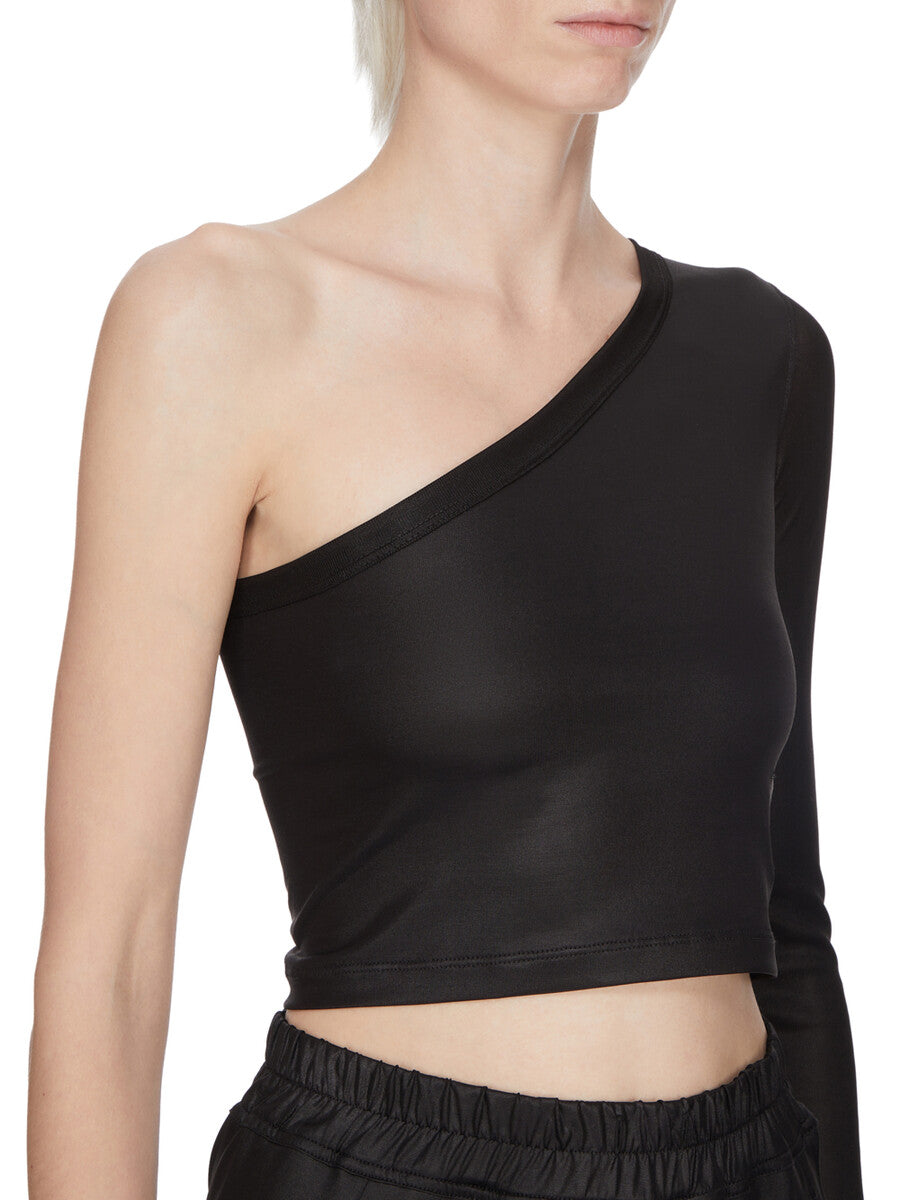 THIS ZIGGY T FINISHES ABOVE-HIP LENGTH AND HAS AN ASYMMETRICAL, SINGLE SHOULDER NECKLINE WITH ONE LONG SLEEVE.