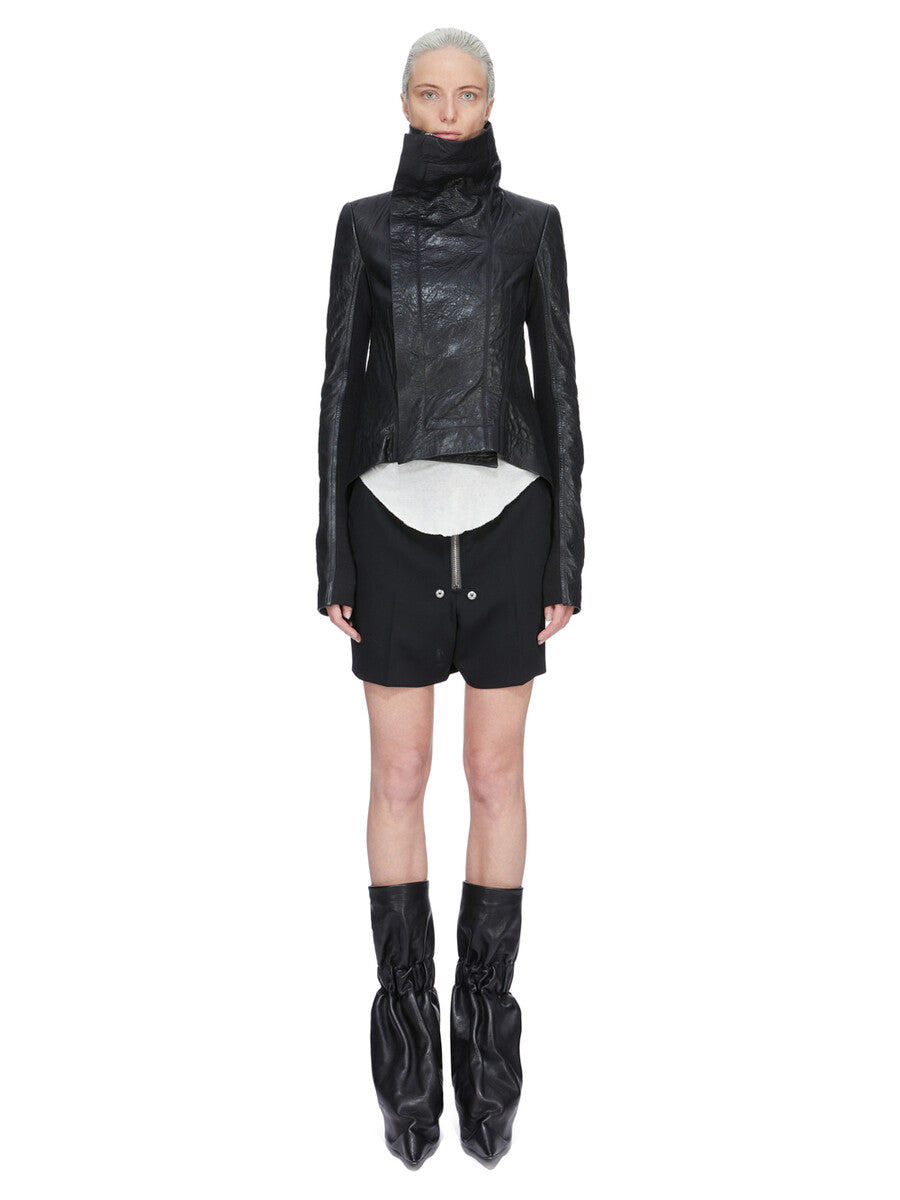 RICK OWENS SS26 TEMPLE NASKA BIKER IN BLACK TUMBLED LAMB