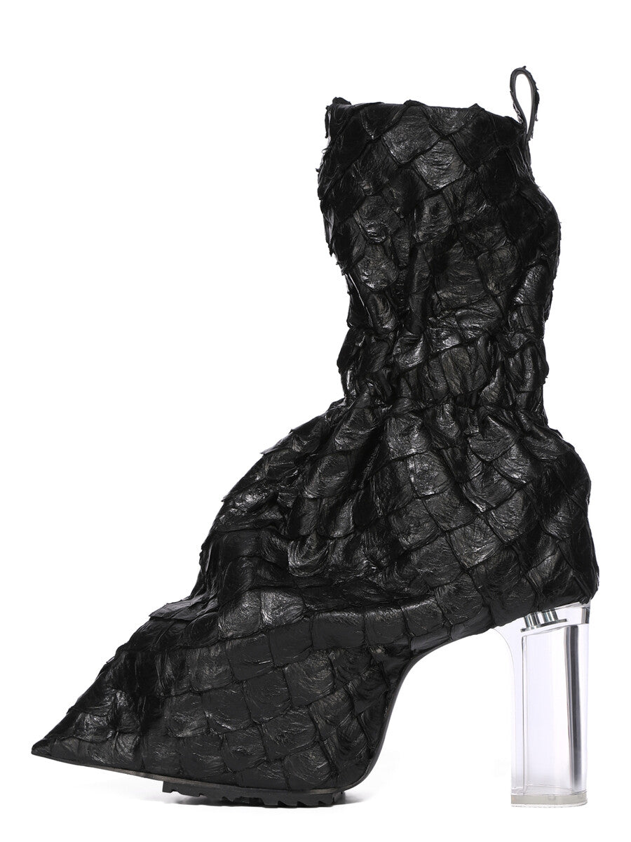 RICK OWENS SS26 TEMPLE PULL ON CUFFED TAQUITO BLACK/CLEAR GLOSSY PIRARUCU