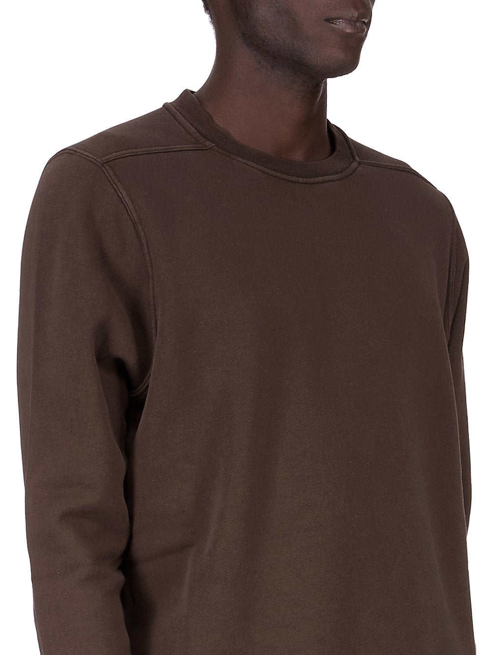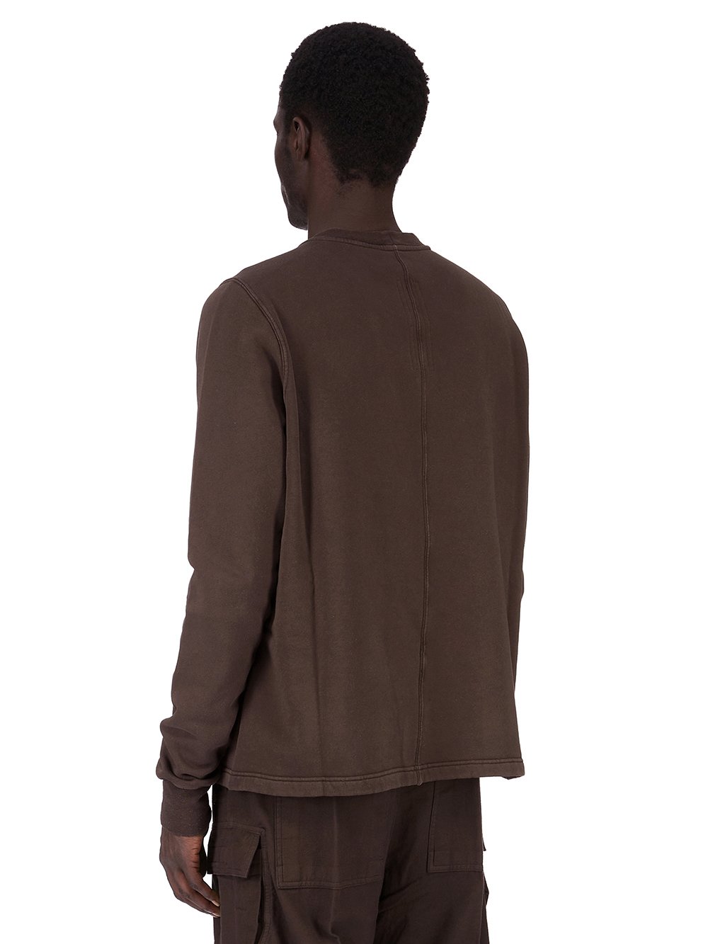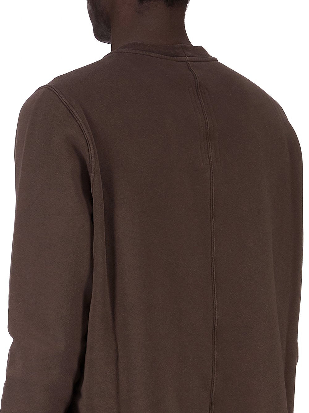 THIS CREWNECK SWEAT IS BELOW HIP LENGTH WITH LONG SLEEVES. IT HAS A RIBBED CREWNECK, CUFFS AND A RAW CUT HEM. IT FEATURES THE SIGNATURE LEVEL SHOULDER SEAMS AND SINGLE SEAM RUNNING DOWN THE CENTRE BACK SPINE.