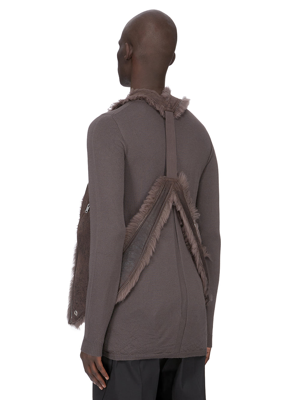RICK OWENS FW25 CONCORDIANS BAUHAUS VEST IN DARKDUST CURLY SHEARLING