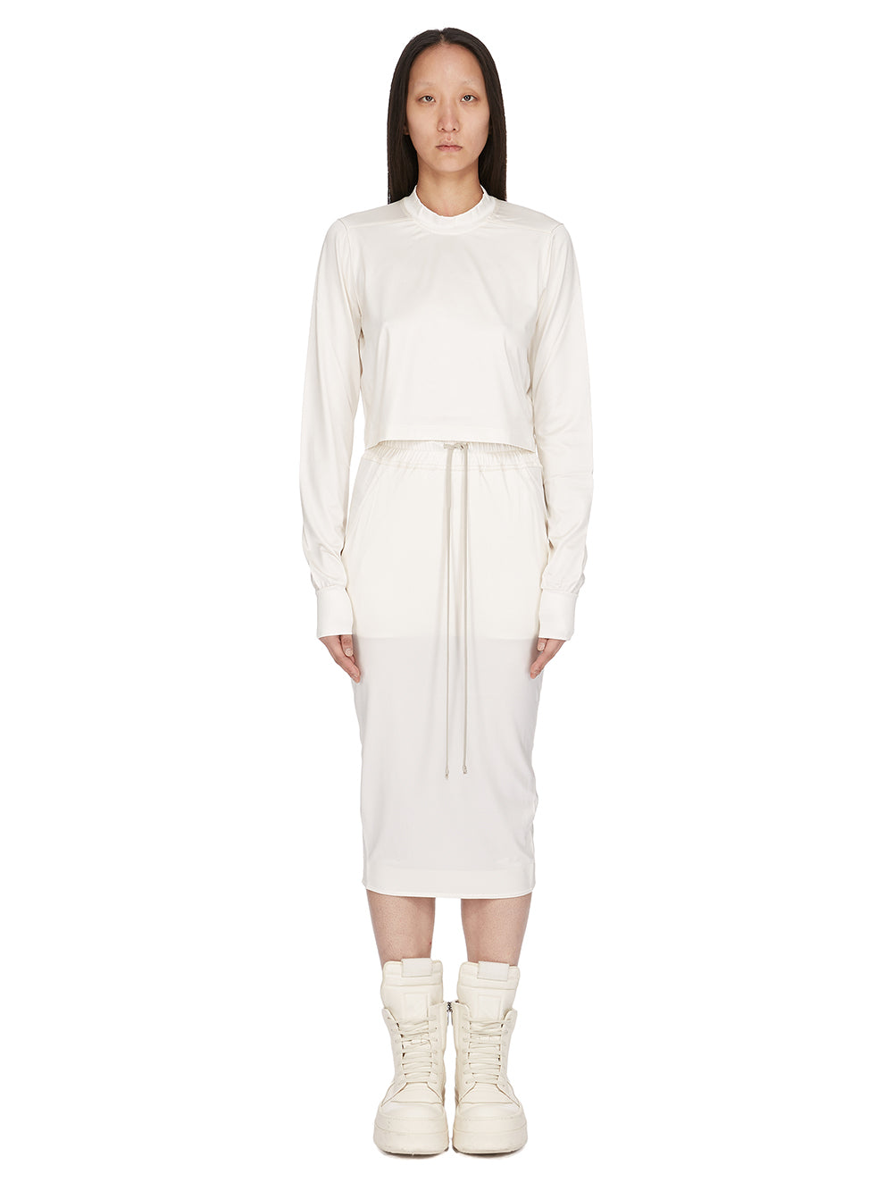 DRKSHDW SS26 TEMPLE CROPPED LEVEL LS IN CREAM LIQUID JERSEY