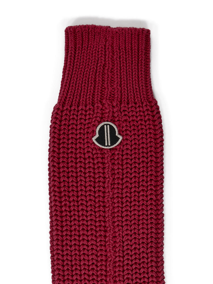 THESE MONCLER + RICK OWENS HIKING SOCKS IN MEDIUMWEIGHT RIBBED COTTON ARE LONG KNEE SOCKS, THAT CAN ALSO BE WORN RUCHED DOWN. THEY FEATURE THE MONCLER + RICK OWENS EMBROIDERED LOGO PATCH ON THE RIGHT UPPER LEG.