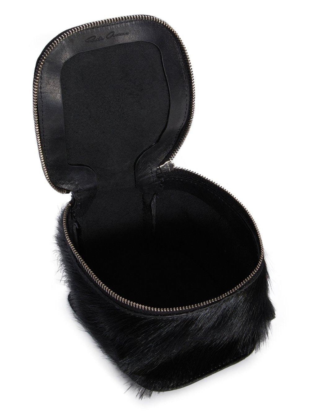 RICK OWENS SMALL BEAUTY CASE IN BLACK HAIR-ON COWSKIN LEATHER