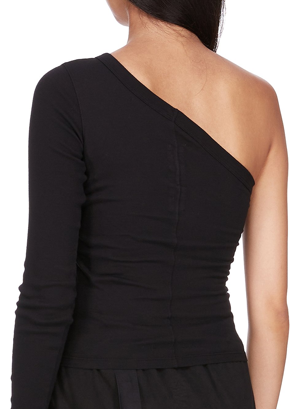 THIS ZIGGY T IS BELOW-WAIST LENGTH AND HAS AN ASYMMETRICAL, SINGLE SHOULDER NECKLINE THAT SCOOPS UNDER THE RIGHT ARM. IT HAS ONE LONG SLEEVE AND FEATURES THE SIGNATURE SINGLE SEAM RUNNING DOWN THE CENTRE BACK SPINE.