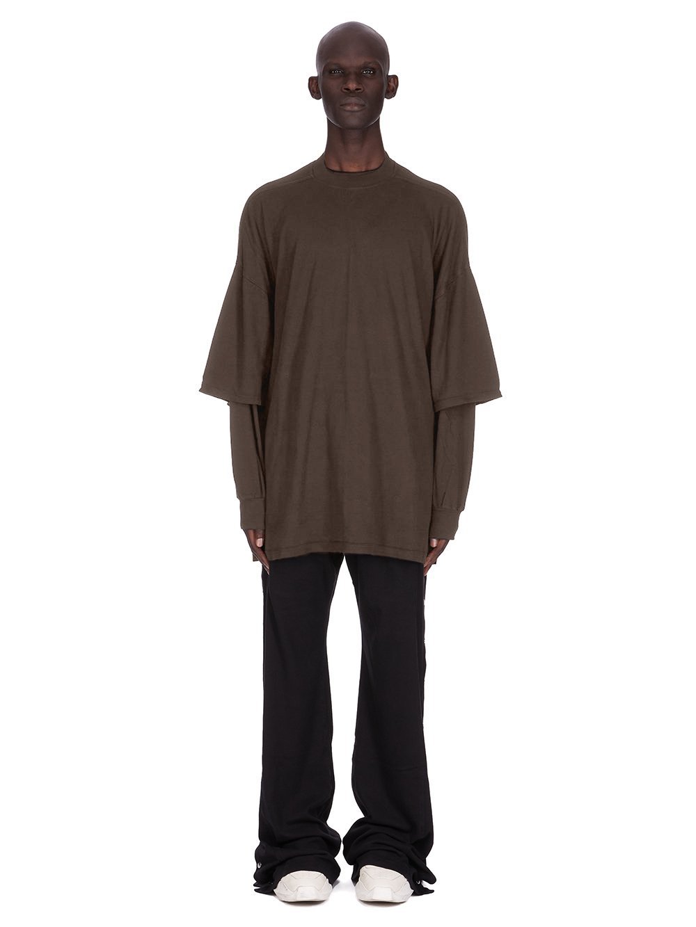 THIS TOMMY HUSTLER SWEAT IS BELOW HIP LENGTH WITH A JUMBO OVERSIZED FIT. IT FEATURES A LONG SLEEVE T-SHIRT WITH RIBBED CREWNECK, CUFFS AND A RAW CUT HEM, OVERLAID WITH A CROPPED OVERSIZE T-SHIRT WITH ELBOW LENGTH SLEEVES. IT HAS THE SIGNATURE LEVEL SHOULDER SEAMS AND SINGLE SEAM RUNNING DOWN THE CENTRE BACK SPINE.
