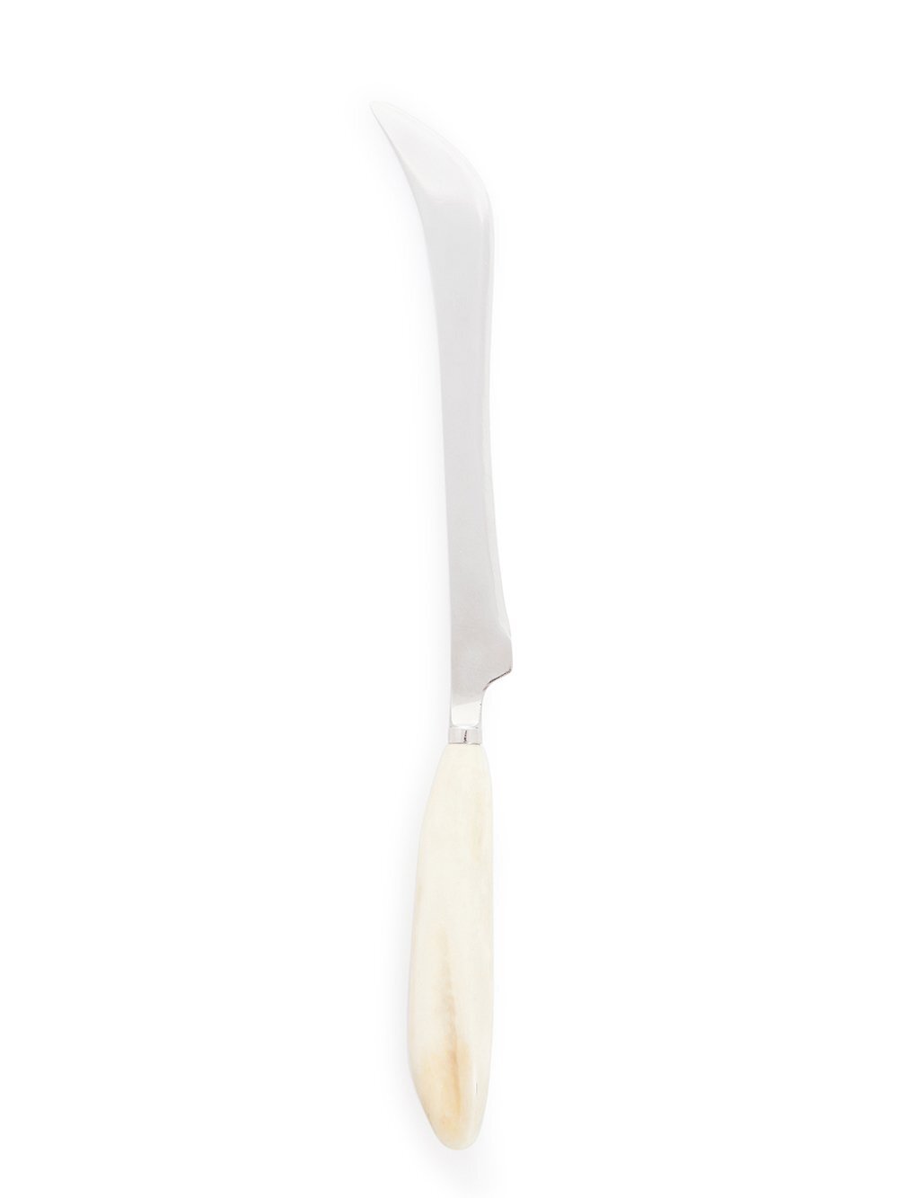 RICK OWENS CARVING KNIFE FEATURES A LONG AND SHARP STERLING TOP AND A SHORT, NATURAL COLOR BONE HANDLE.