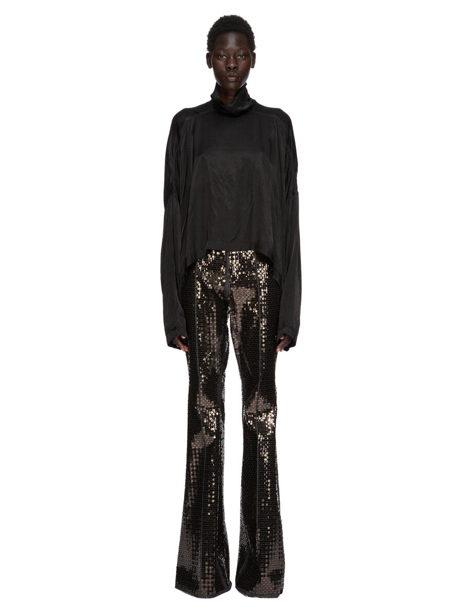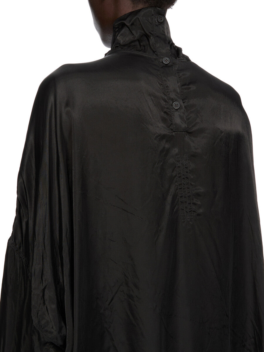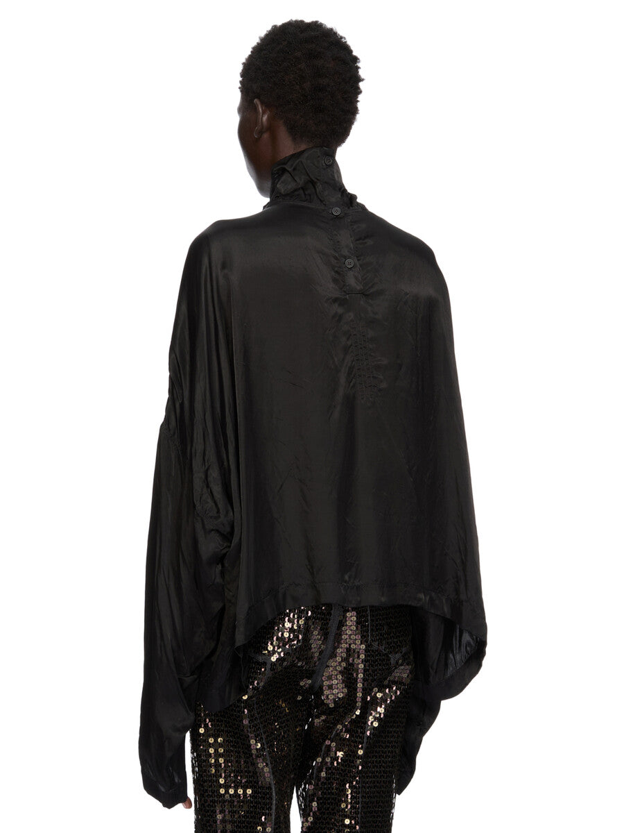 RICK OWENS SS26 TEMPLE JUMBO TABARD CROPPED TOP IN BLACK CUPRO SATIN