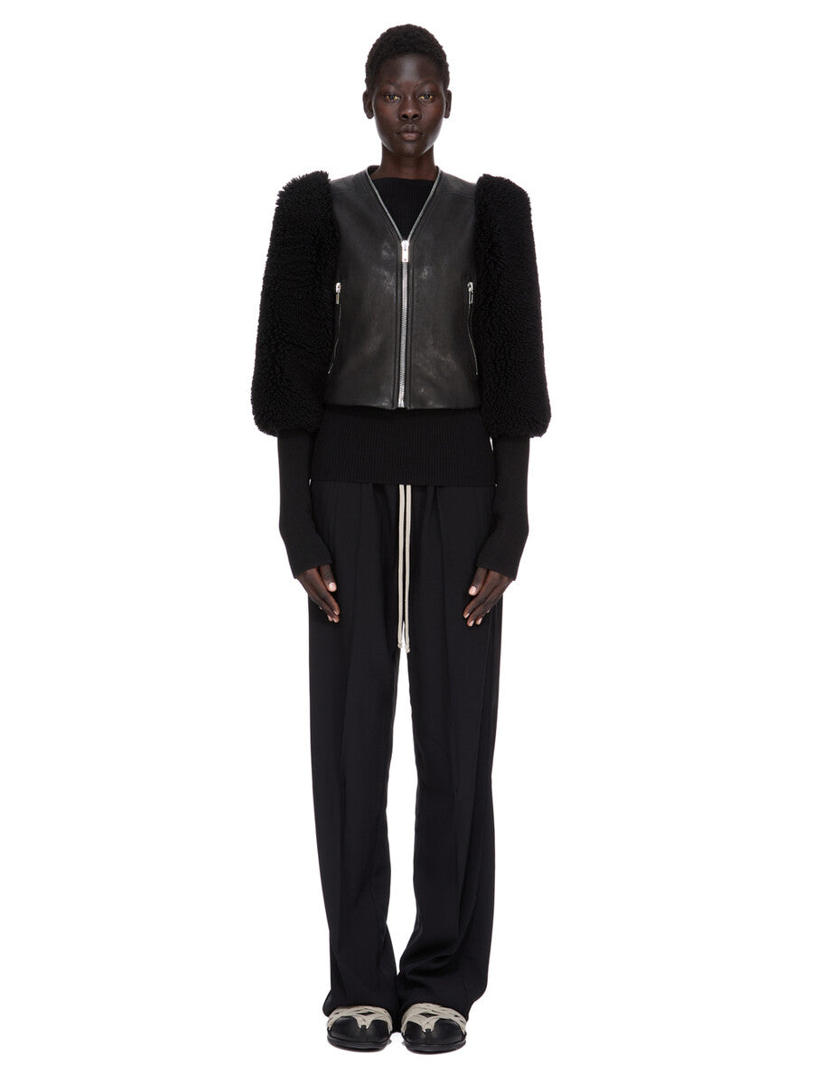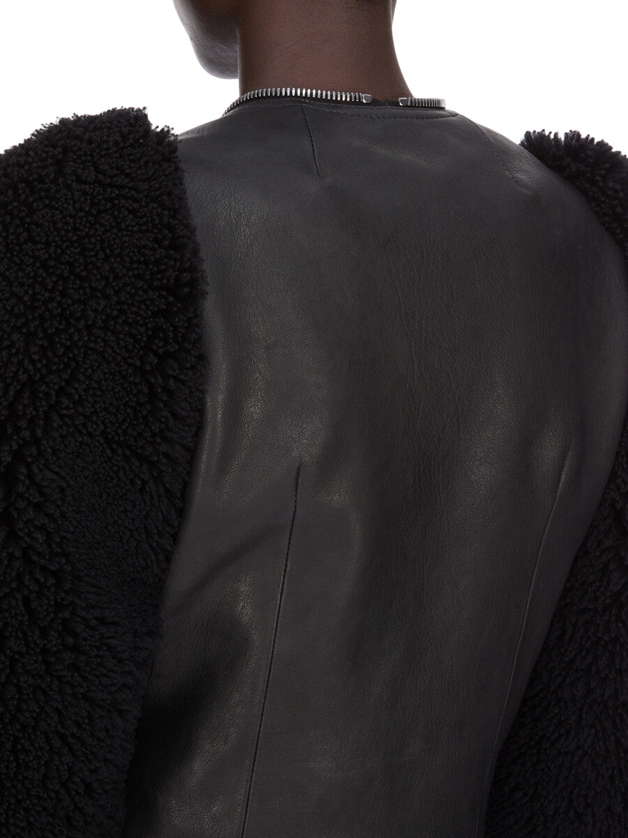 RICK OWENS FW25 CONCORDIANS CROPPED KLAUS IN BLACK CURLY SHEARLING AND WAXY GOAT LEATHER