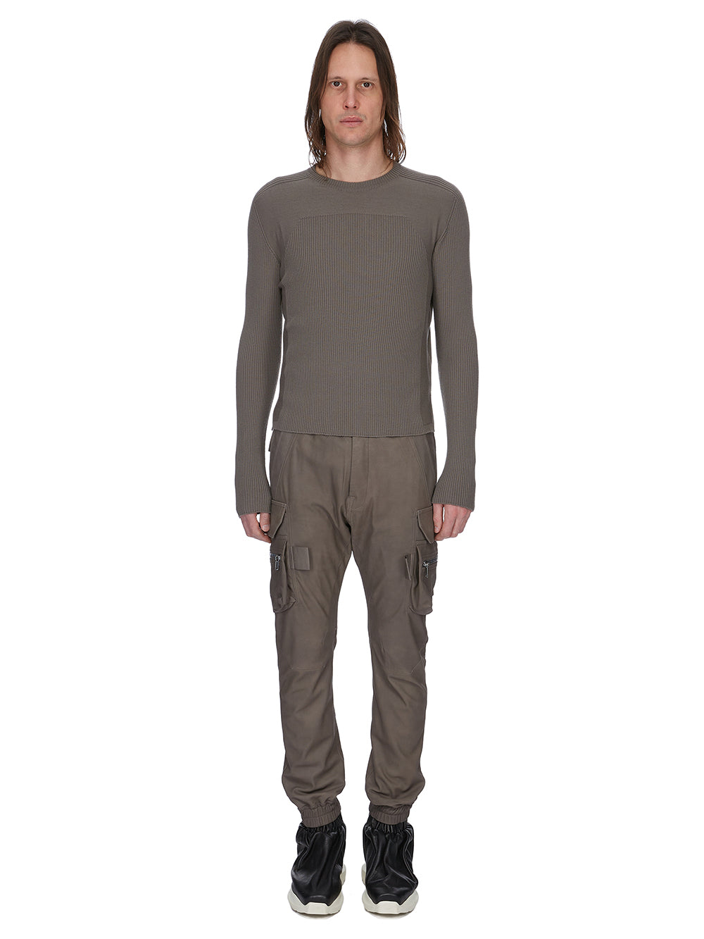 RICK OWENS SS26 TEMPLE RIBBED GEO IN DUST RIBBED KNIT