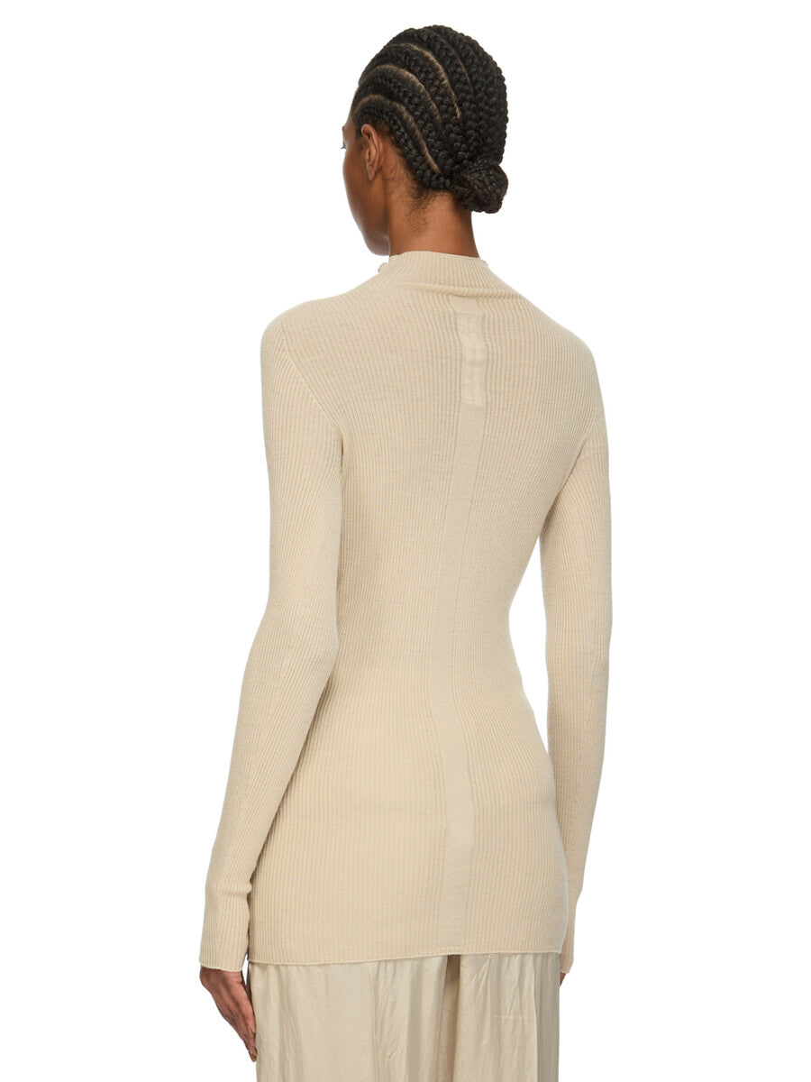 RICK OWENS SS26 TEMPLE LS TURTLE IN SAND RIBBED KNIT