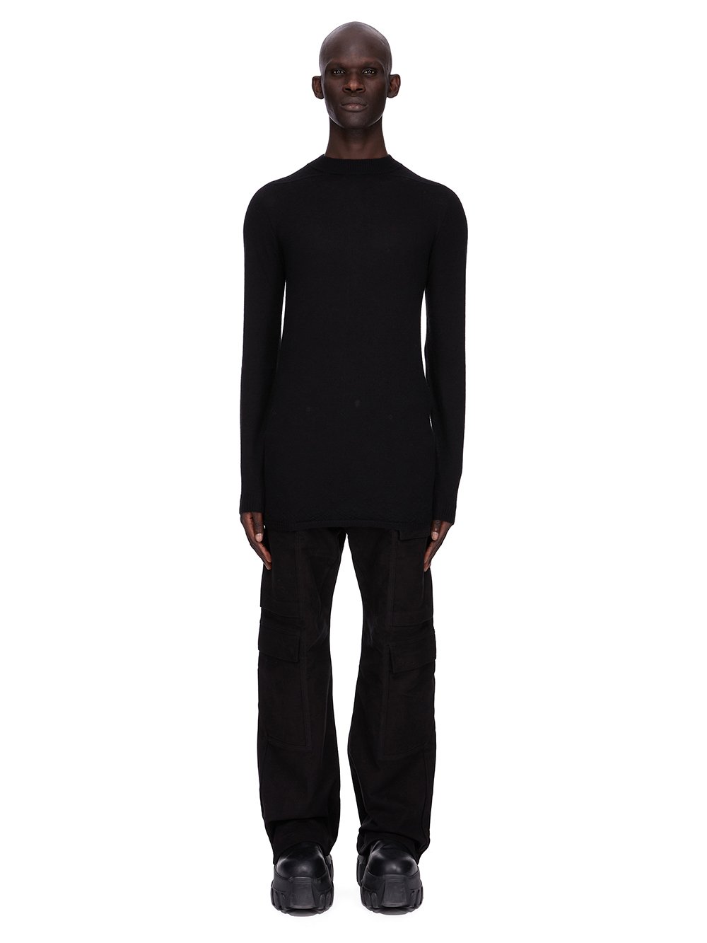 RICK OWENS FW25 CONCORDIANS LEVEL LUPETTO IN BLACK LIGHTWEIGHT CASHMERE KNIT