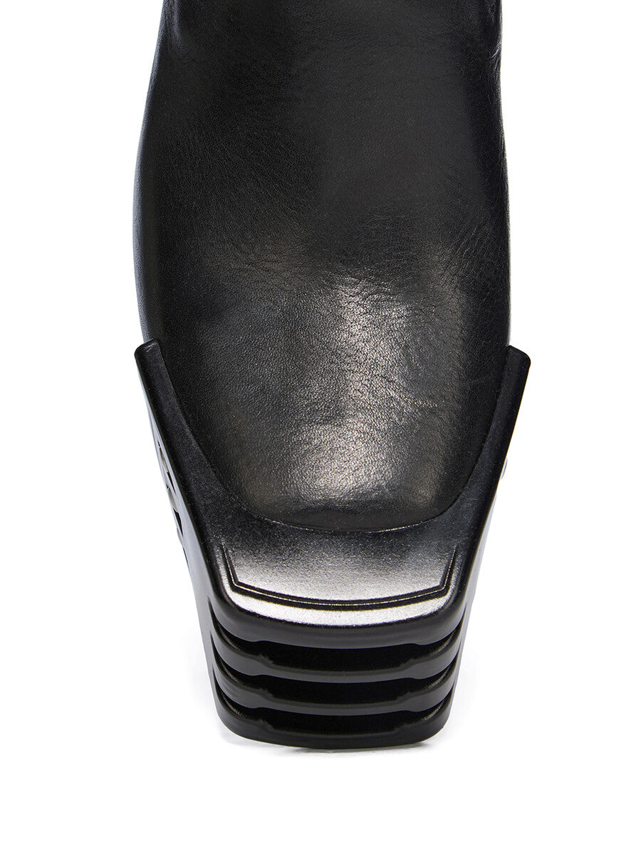 RICK OWENS SS26 TEMPLE GRILLED WEDGE BEATLE IN BLACK WASHED CALF LEATHER