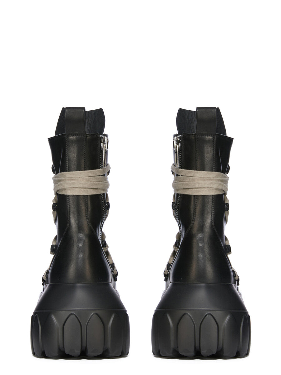 RICK OWENS SS26 TEMPLE MEGALACED MEGA TRACTOR IN BLACK WASHED CALF LEATHER