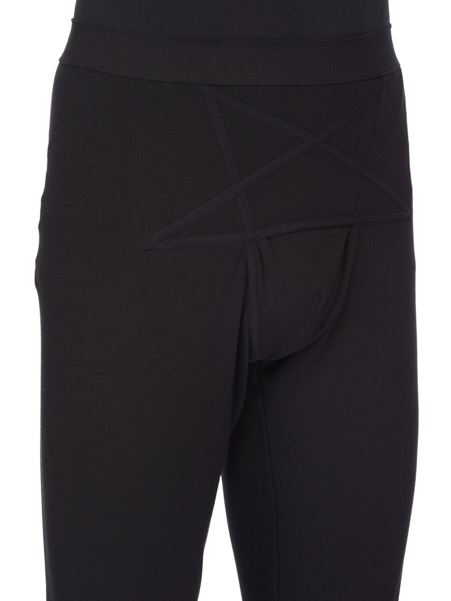 THIS THERMAL BOTTOM IS ANKLE LENGTH. IT HAS AN ELASTICIZED WAISTBAND, ANKLE CUFFS AND PENTAGRAM STITCHING ACROSS THE FRONT.