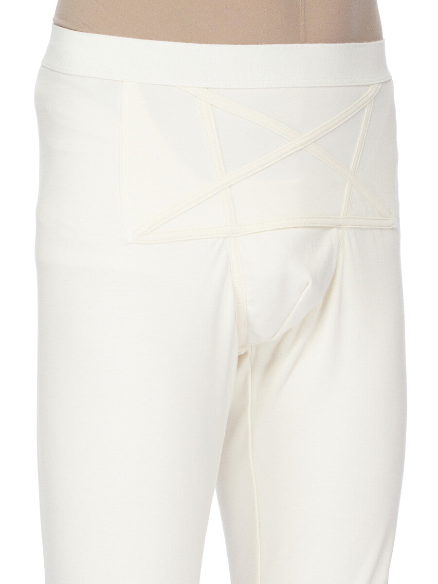 THIS THERMAL BOTTOM IS ANKLE LENGTH. IT HAS AN ELASTICIZED WAISTBAND, ANKLE CUFFS AND PENTAGRAM STITCHING ACROSS THE FRONT.