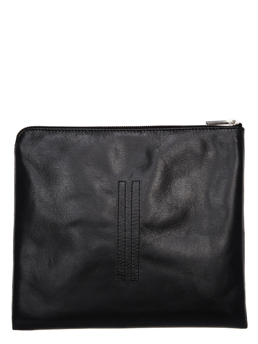 RICK OWENS SS26 TEMPLE TRAVEL LIQUID BAG IN BLACK GLASGOW CALF LEATHER