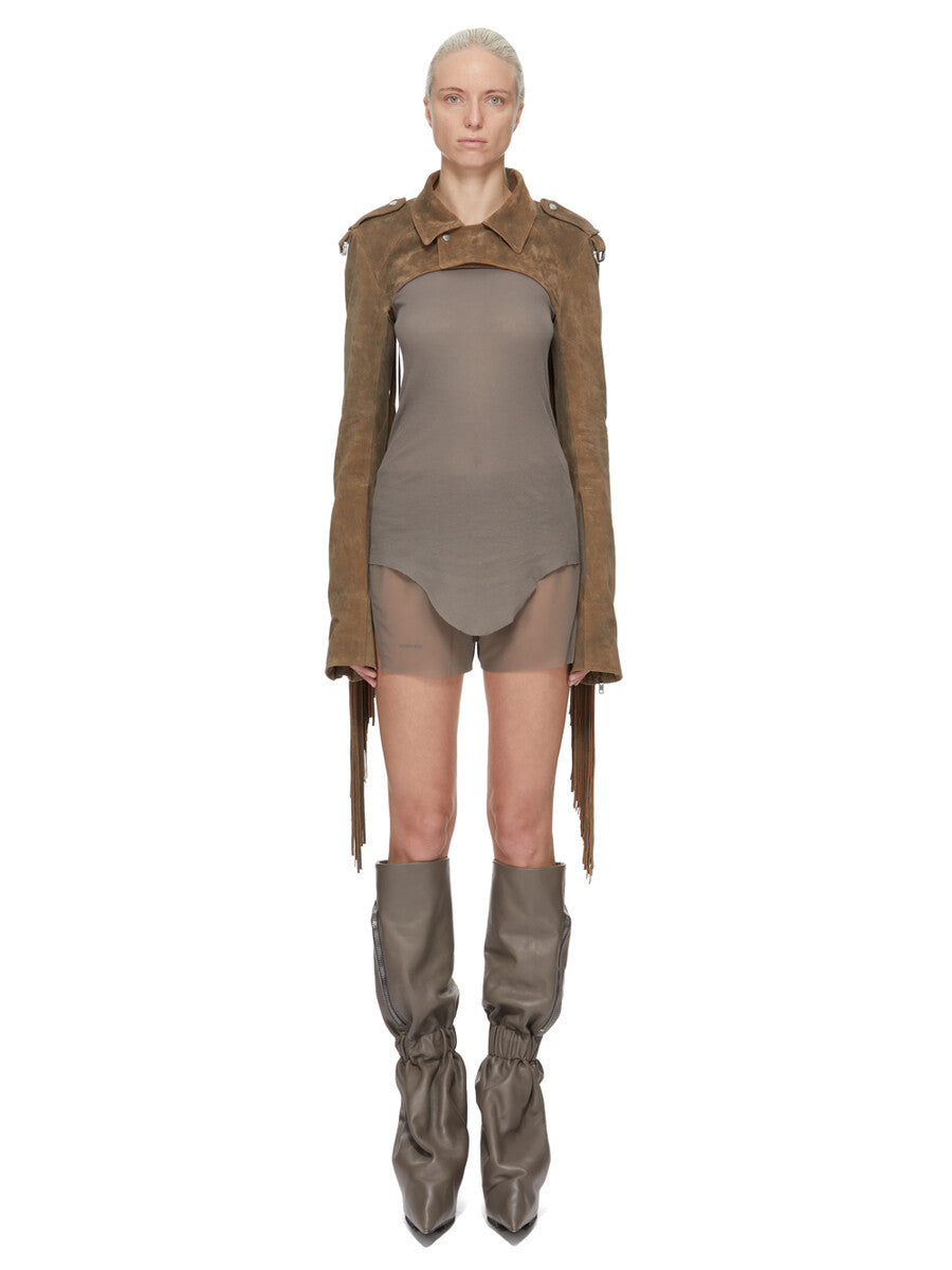 RICK OWENS SS26 TEMPLE BOXING SHORT IN DUST STRETCH TULLE
