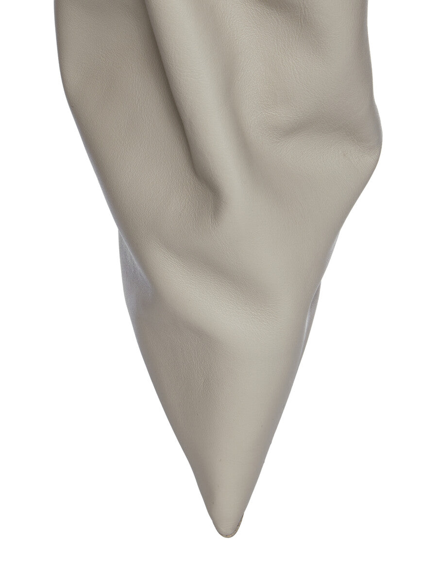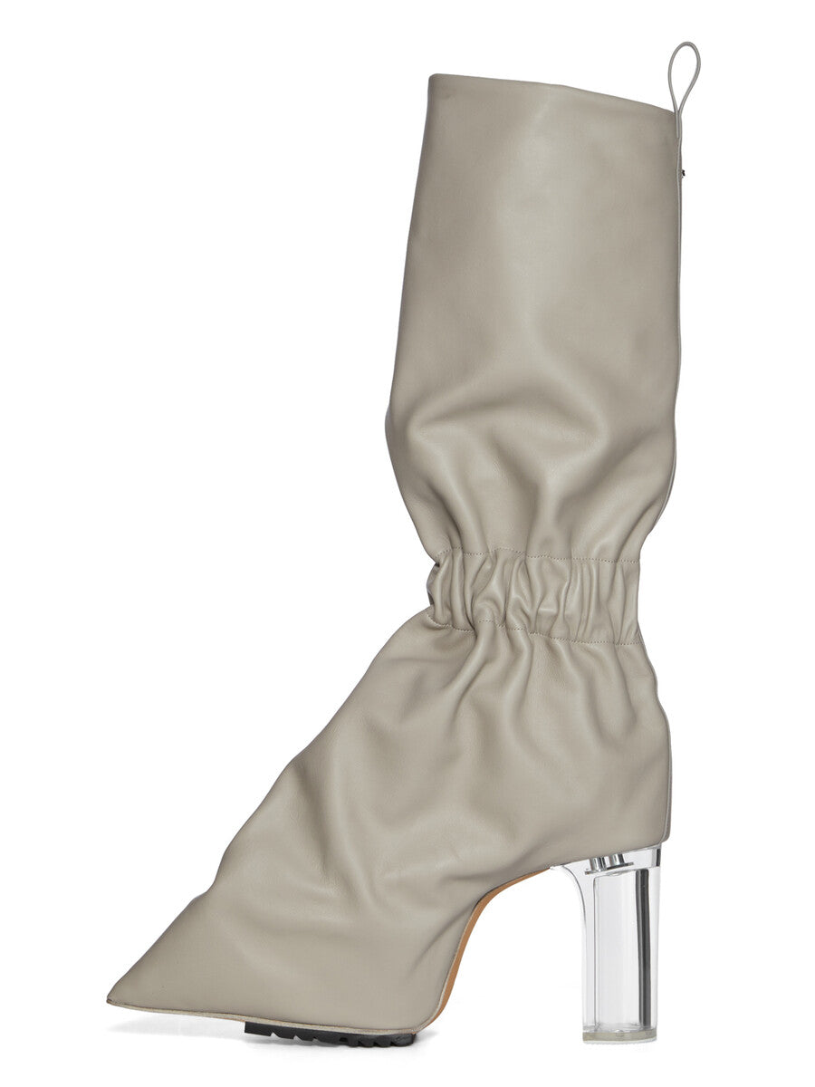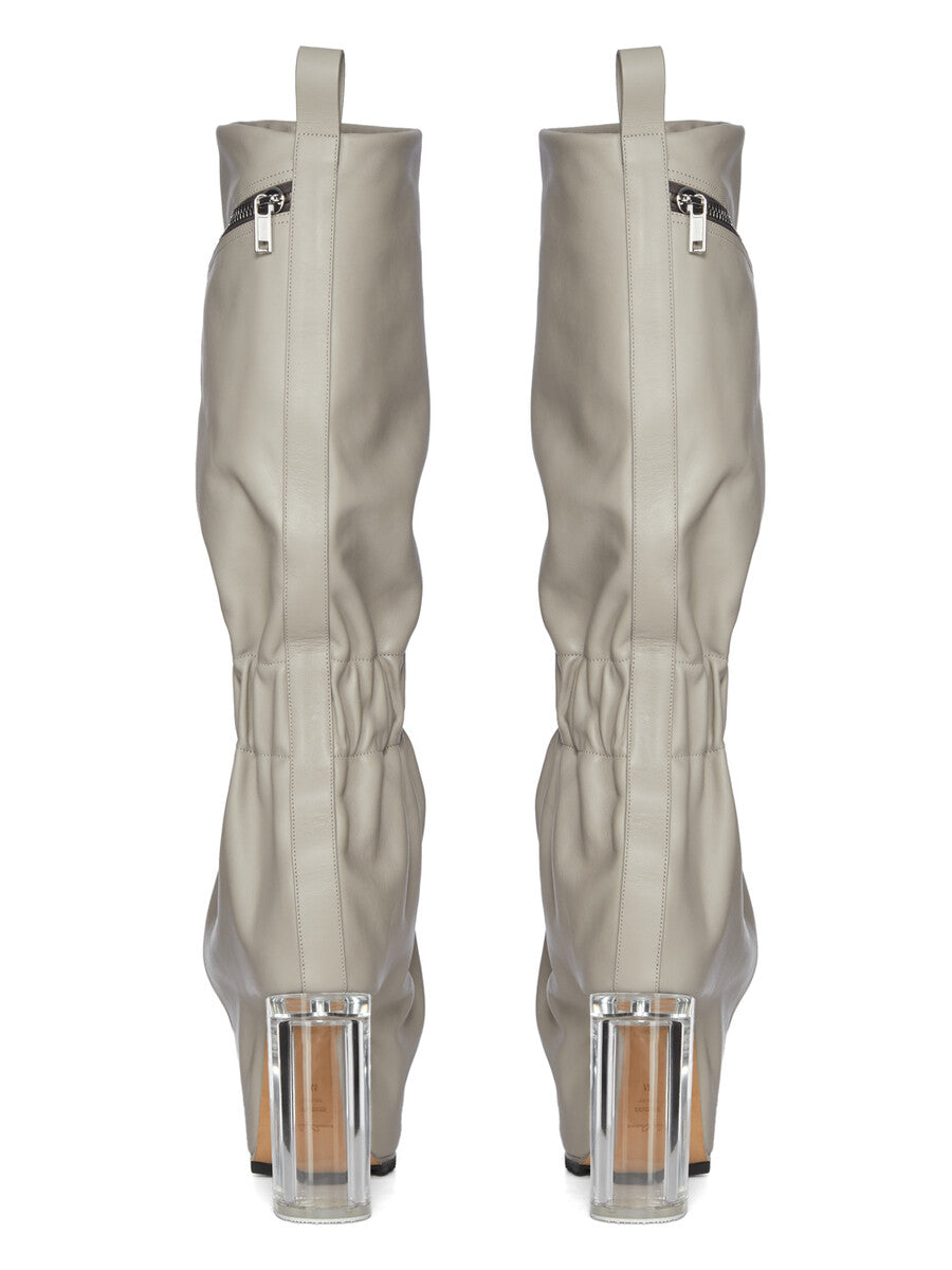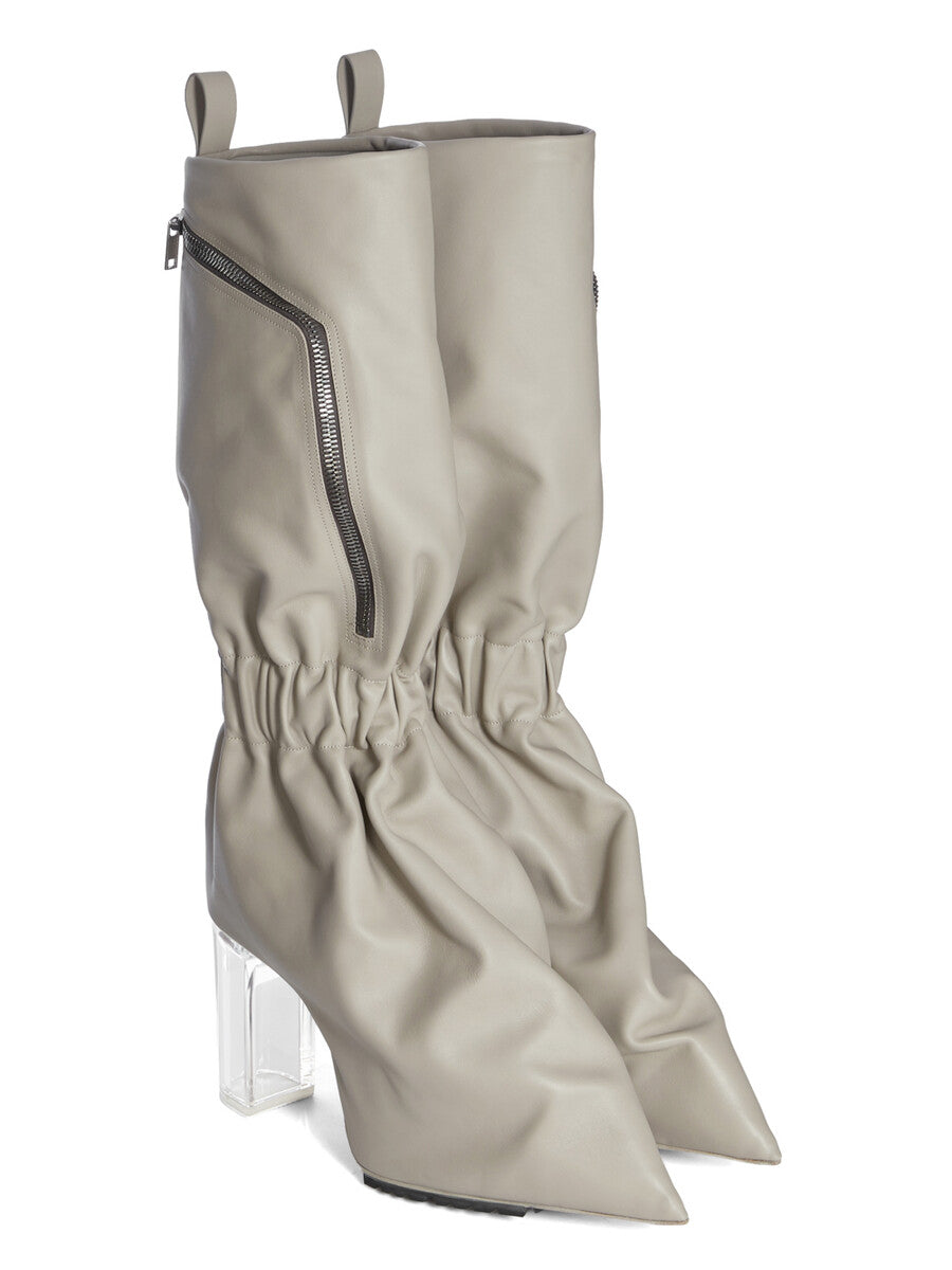 THESE CARGO TAQUITO ARE A SHORT, DEFLATED, VERSION OF OUR STRAYTUKAY COLLABORATION BOOTS. THEY ARE ABOVE ANKLE HEIGHT. THEY FEATURE A LEATHER UPPER WITH A CARGO ZIPPERED POCKET ON THE OUTER SIDE, THEY THEN FLARE DOWN FROM THE ANKLE AND IS ELASTICIZED AROUND THE ANKLE, CREATING A SLIGHT DRAPE. IT THEN CURVES INTO THE BACK HEEL AND POINTS AT THE TOE. THEY HAVE A 12CM HEEL, A THICK FRONT PLATFORM (7,5CM) AND A 4,5CM RISE AND A BACK PULL TAB.