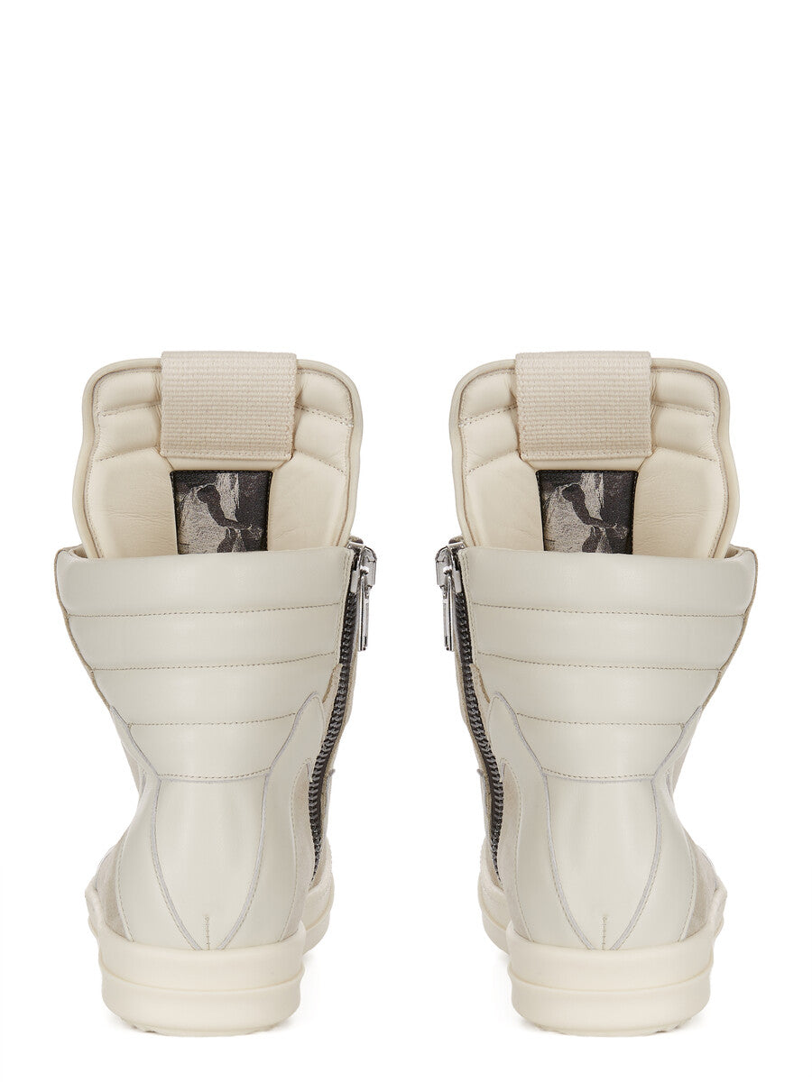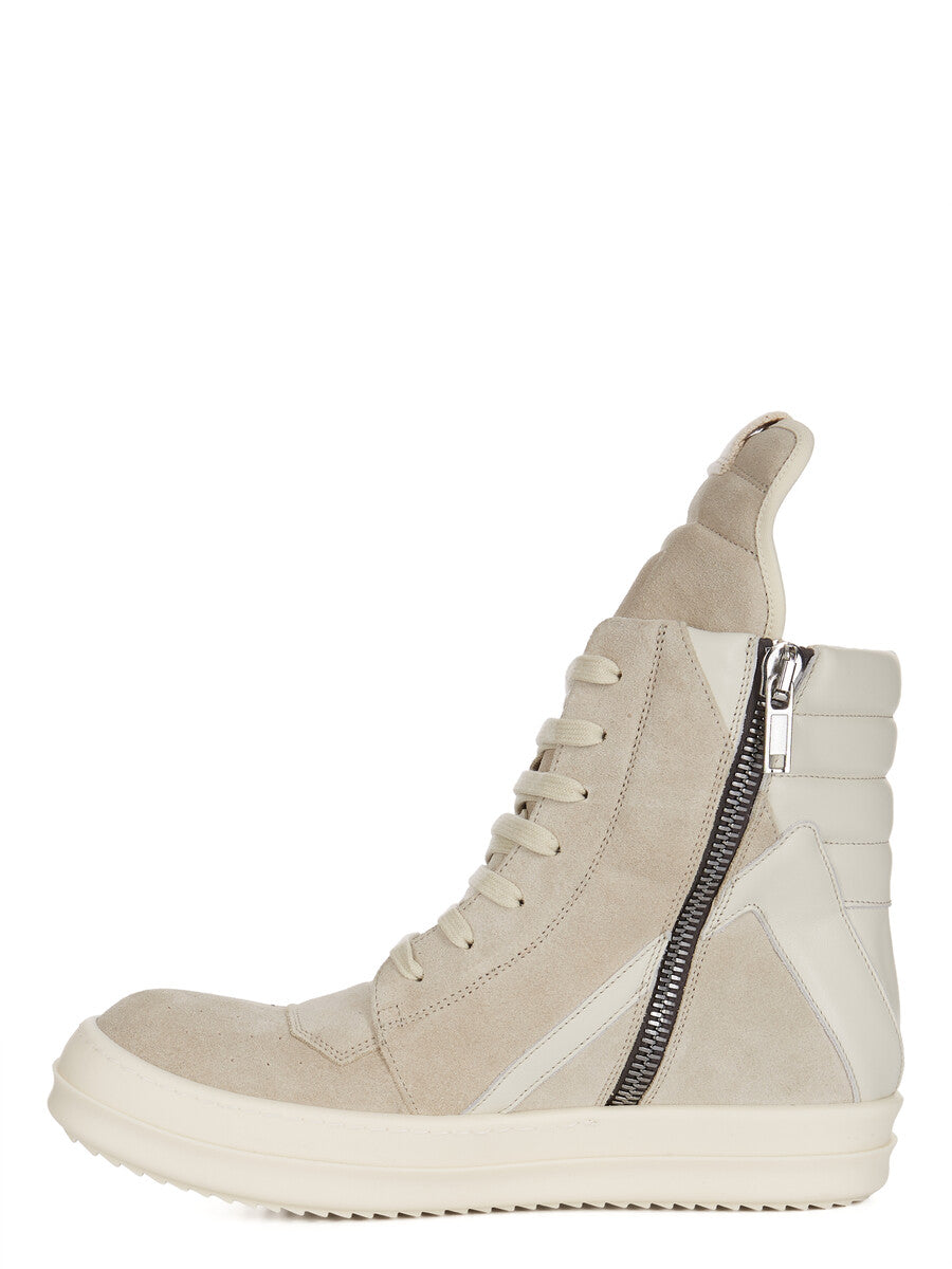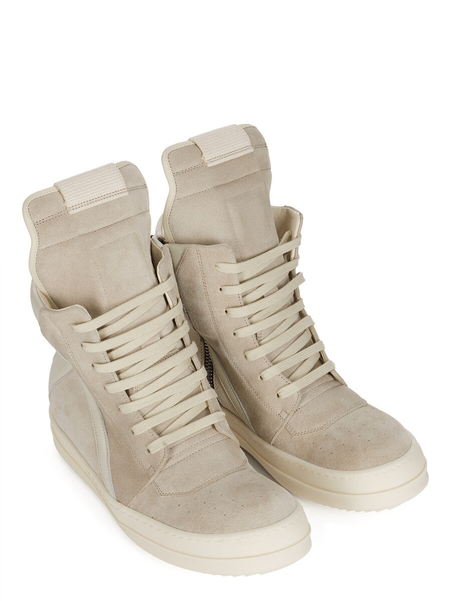 RICK OWENS SS26 TEMPLE GEOBASKET IN PEARL/DIRTY MILK/MILK SUEDE LEATHER AND FULL GRAIN CALF LEATHER