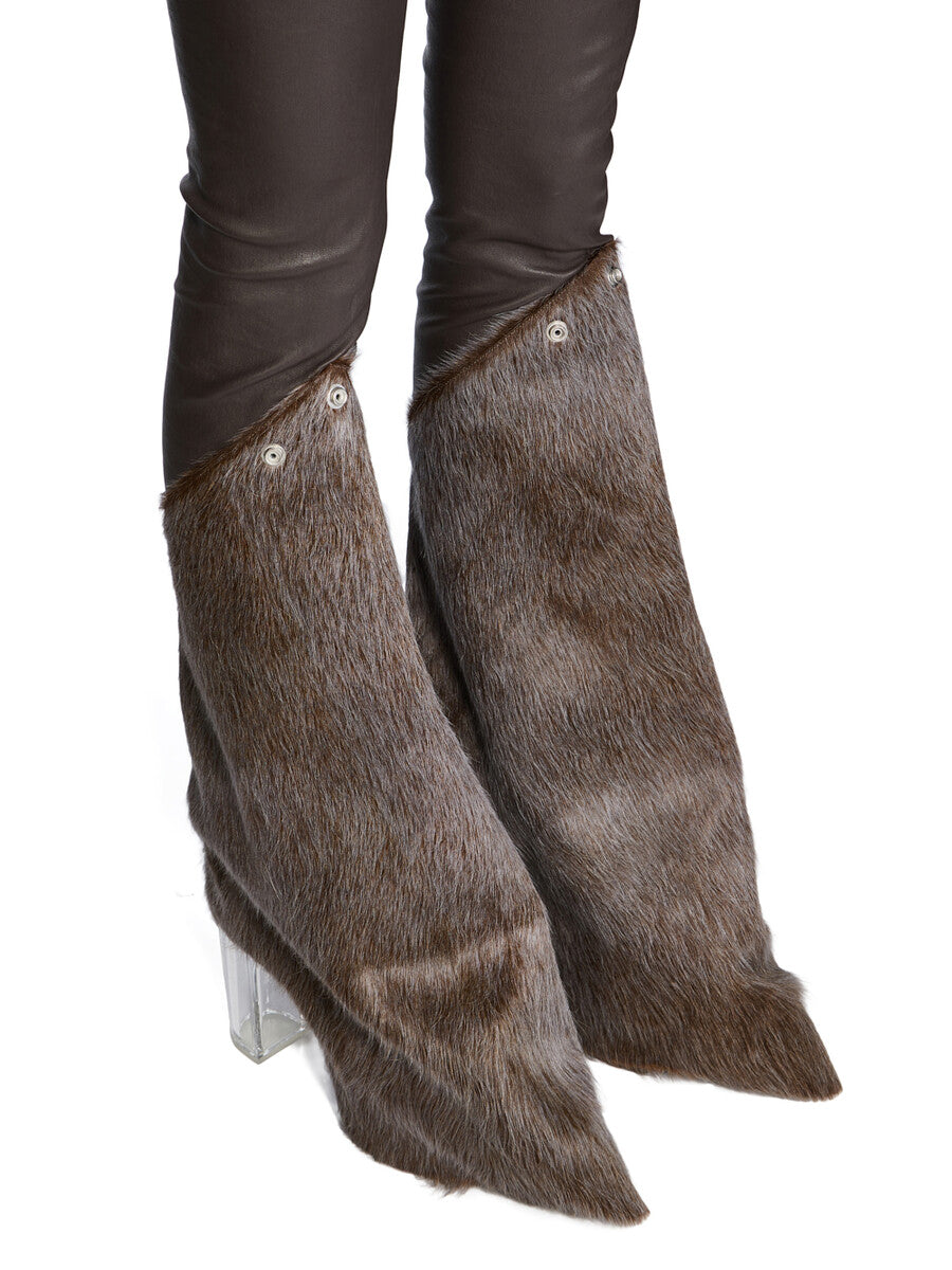 THIS COLOR IS ACHIEVED BY BLEACHING THE NATURAL COW HAIR. VARIATIONS IN COLOR AND ESPECIALLY YELLOW SHADINGS CAN BE PRESENT DUE TO NATURAL URINE STAINS. THIS MEANS NO TWO PRODUCTS ARE EXACTLY ALIKE, GIVING EACH ITS INDIVIDUAL UNIQUENESS. THIS IS NOT TO BE CONSIDER DEFECT BUT IS THE VISUAL ASPECTS DESIRED SPECIFICALLY BY RICK OWENS.