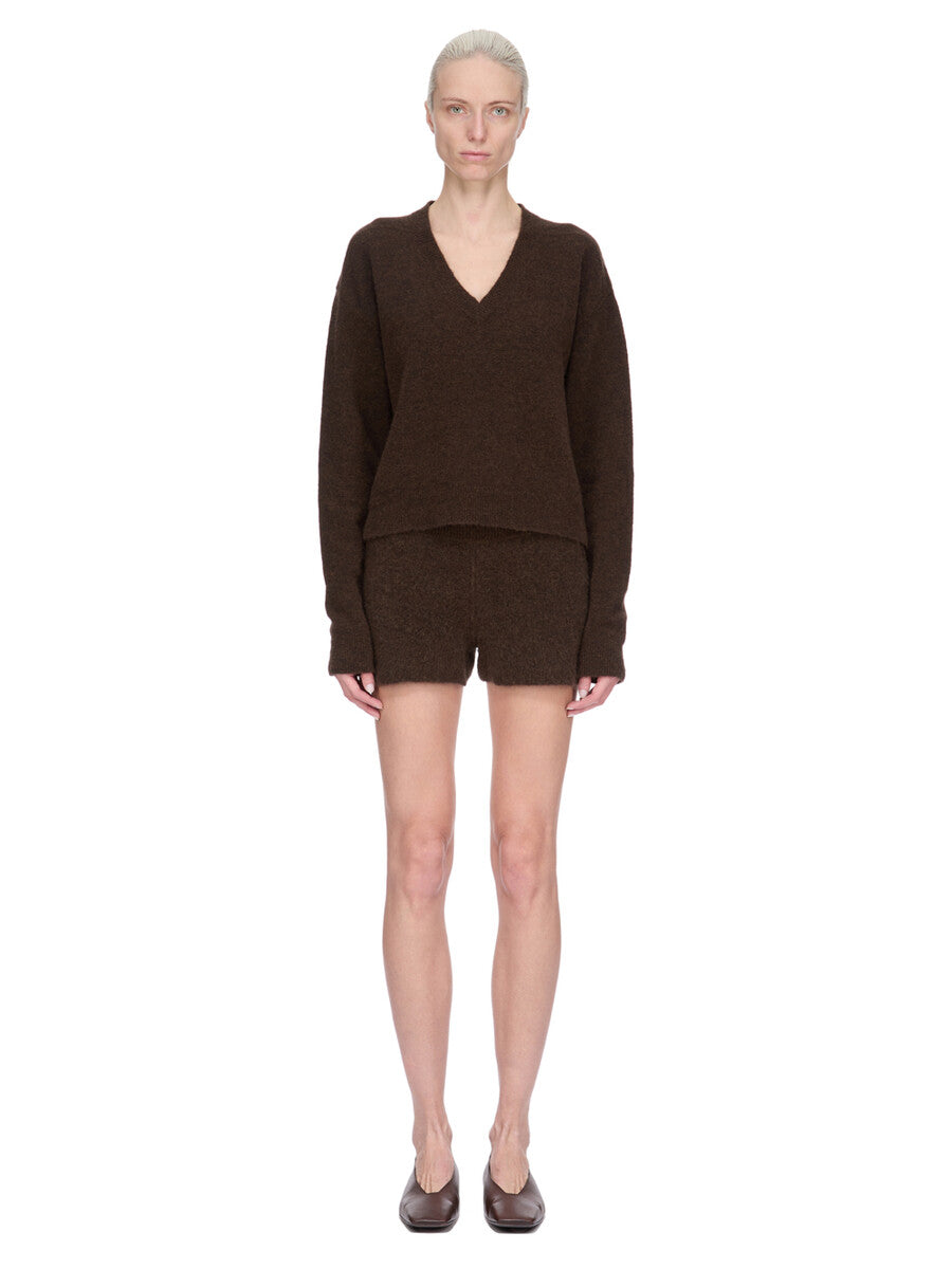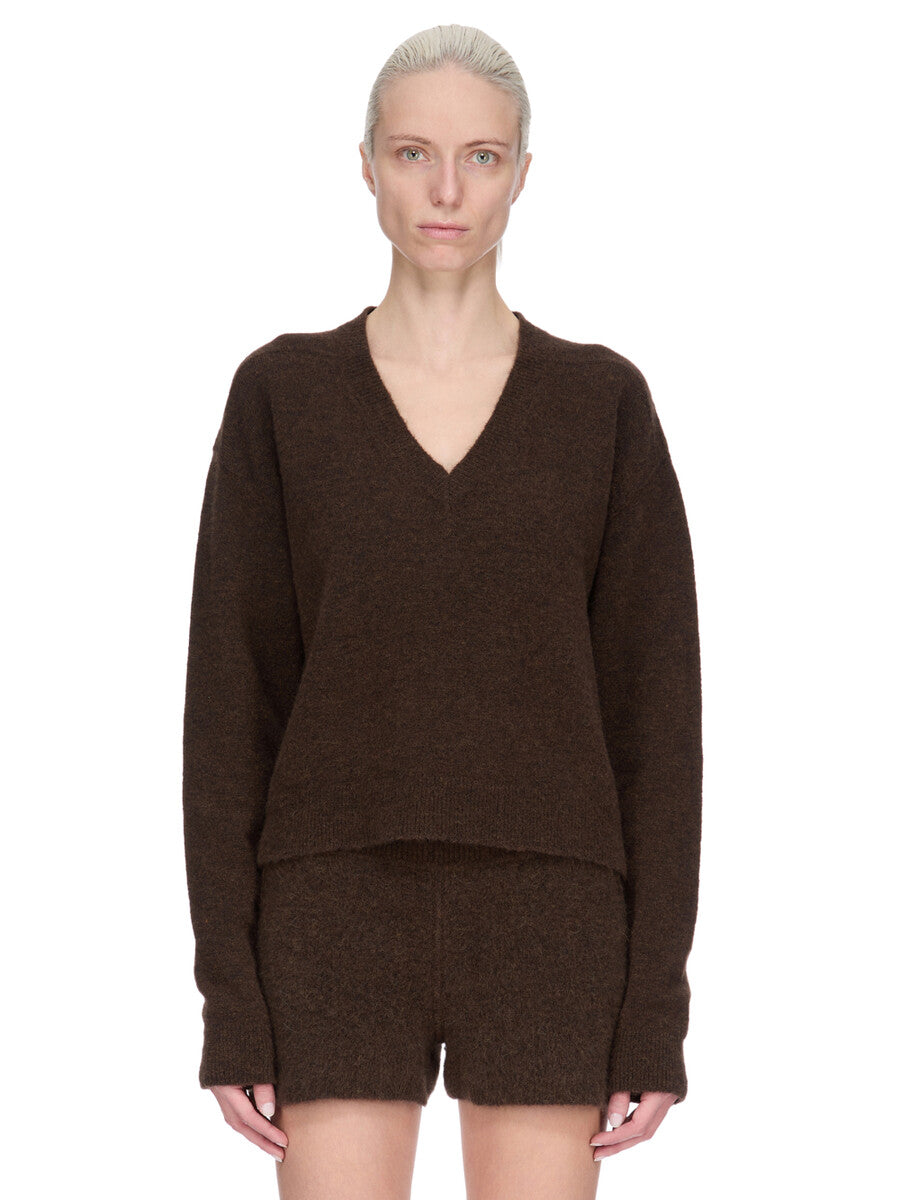 RICK OWENS FW25 CONCORDIANS TOMMY V NECK IN BROWN ALPACA KNIT