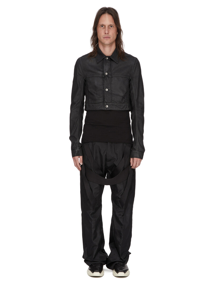 THESE MEGASTRAPPED GETH JEANS ARE A FULL-LENGTH 5 POCKET JEAN WITH A LOW-RISE AND WIDE FIT. THEY HAVE A SILVER BUTTON FLY, BELT LOOPS AND POCKET RIVETS. THIS VERSION FEATURES TWO STRAPS ON EACH THIGH AND ONE WIDE STRAP THAT CONNECTS BOTH THIGHS JUST BELOW THE CROTCH.
