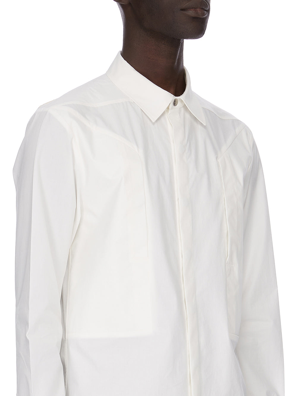 RICK OWENS SS26 TEMPLE FOGPOCKET OUTERSHIRT IN MILK COTTON POPLIN