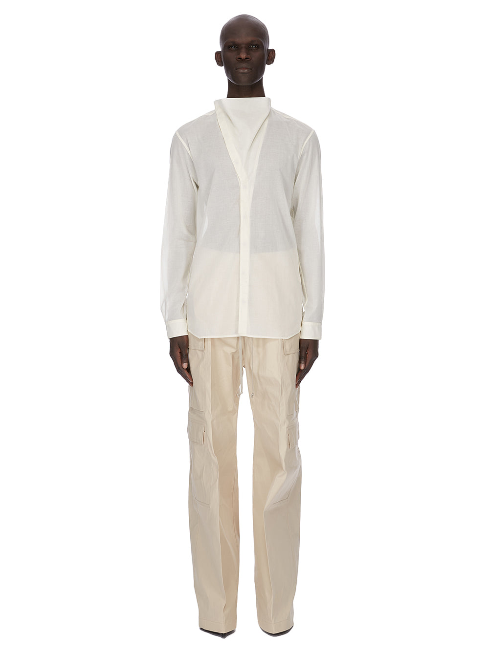 RICK OWENS SS26 TEMPLE ISLAND SHIRT IN BUTTER COTTON VOILE