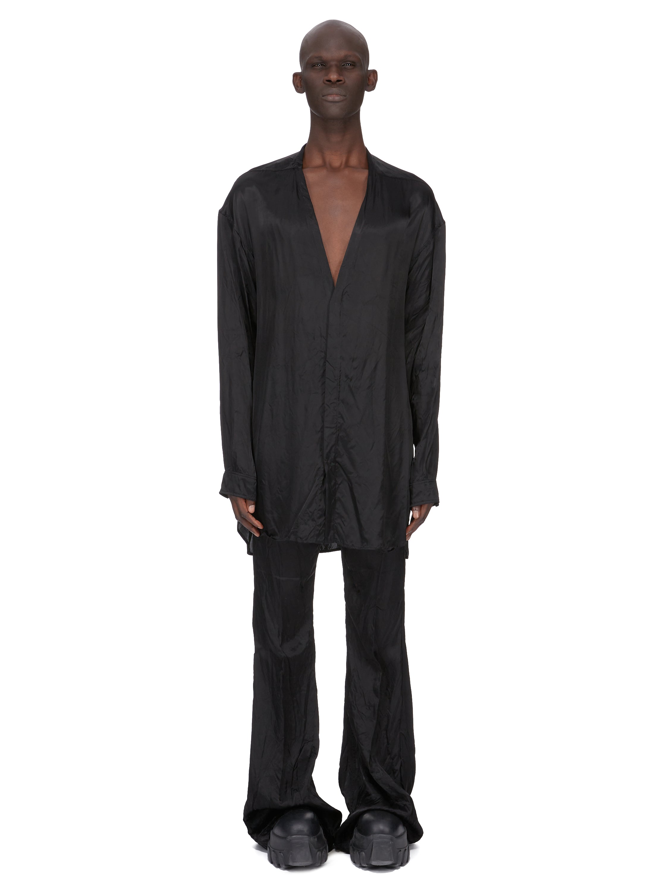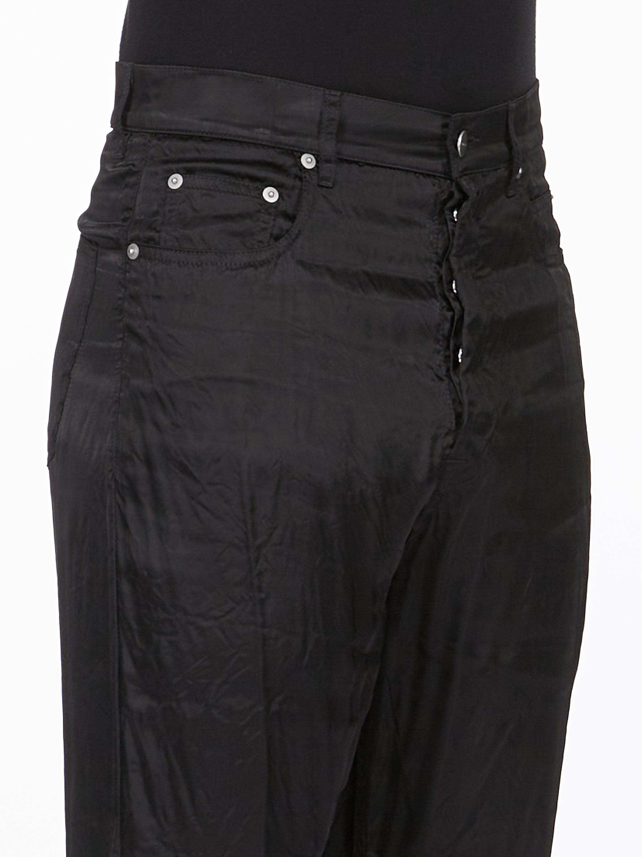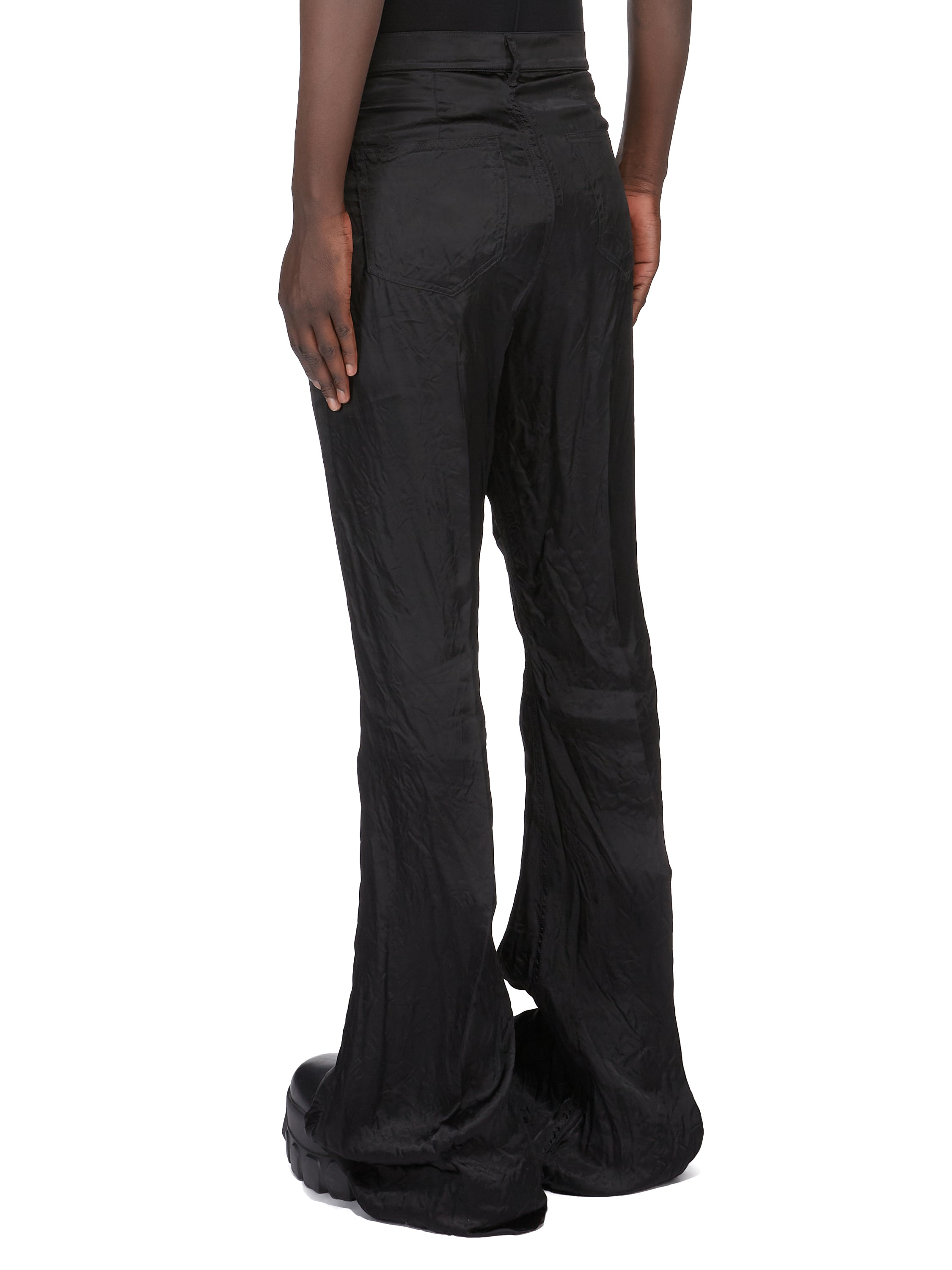 RICK OWENS SS26 TEMPLE BOLAN BOOTCUT IN BLACK CUPRO SATIN