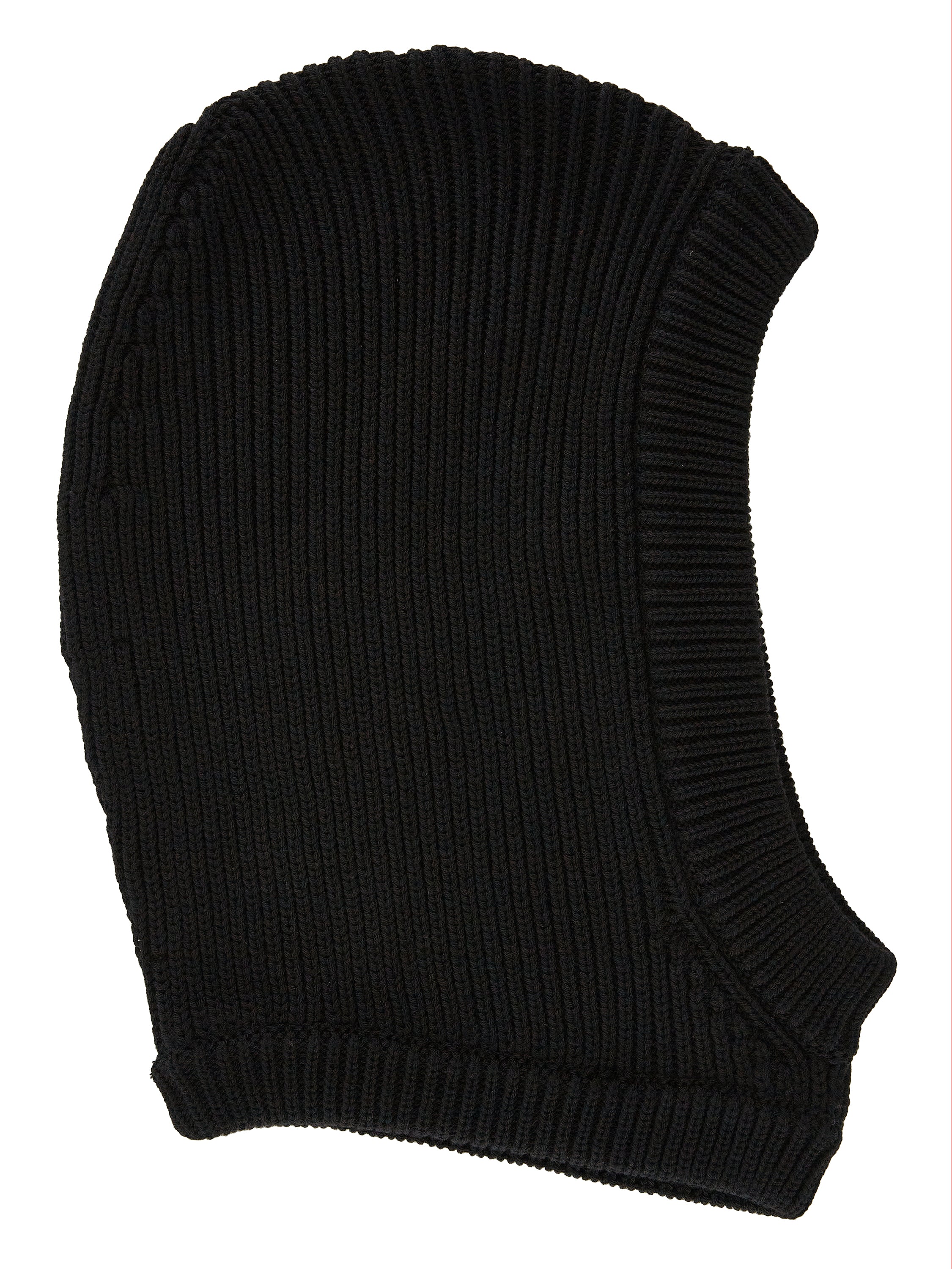 THIS HOOD FITS OVER THE HEAD LIKE A SNOOD AND HAS A THICK RIBBED EDGE. IT CAN BE WORN AS A HOOD OR DOWN AROUND THE NECK AS A SCARF.